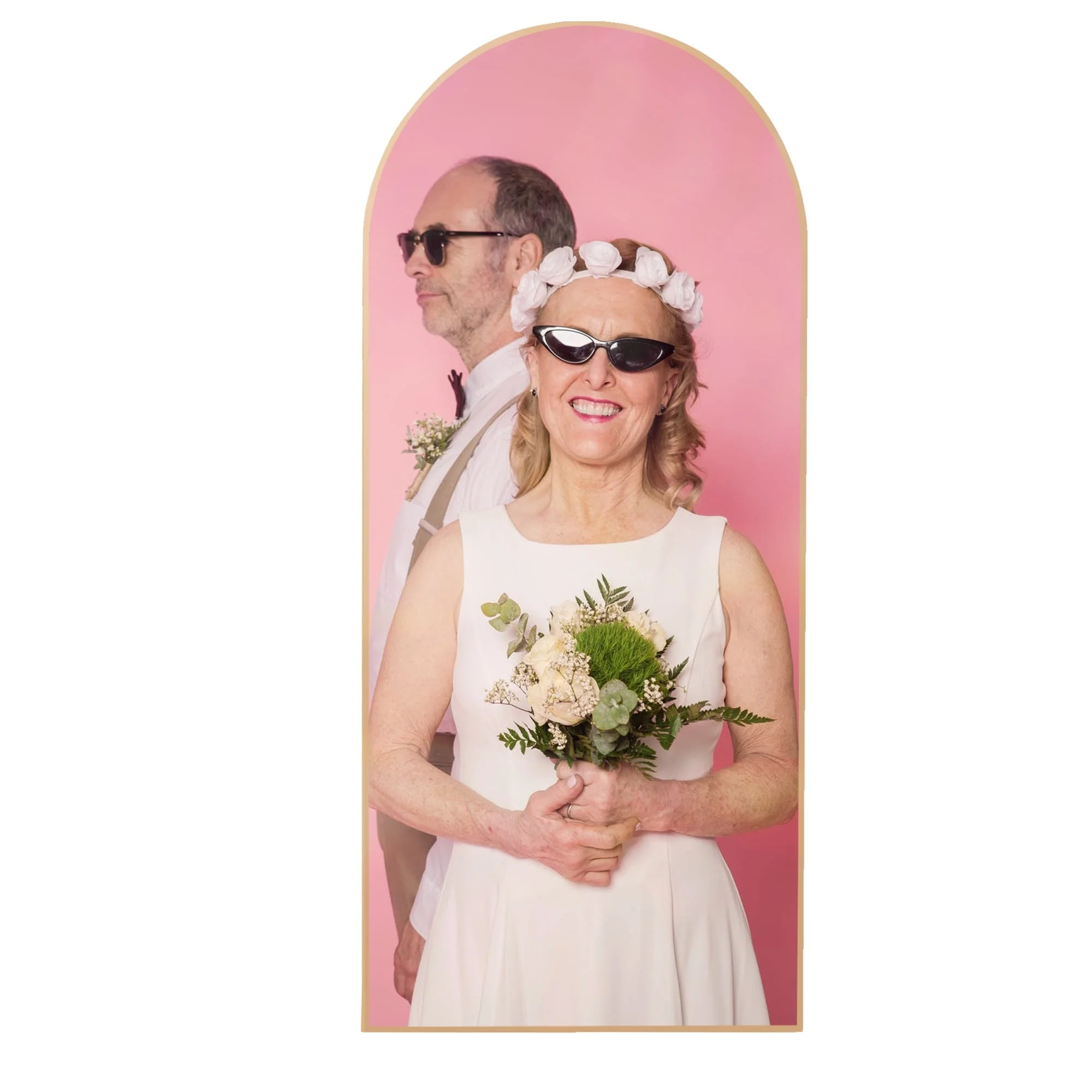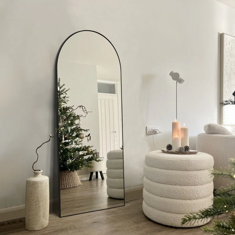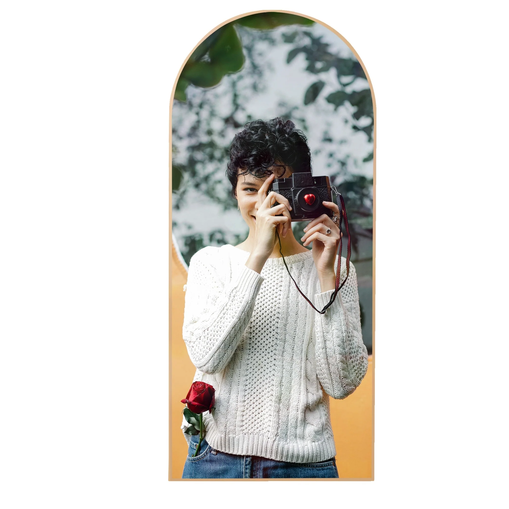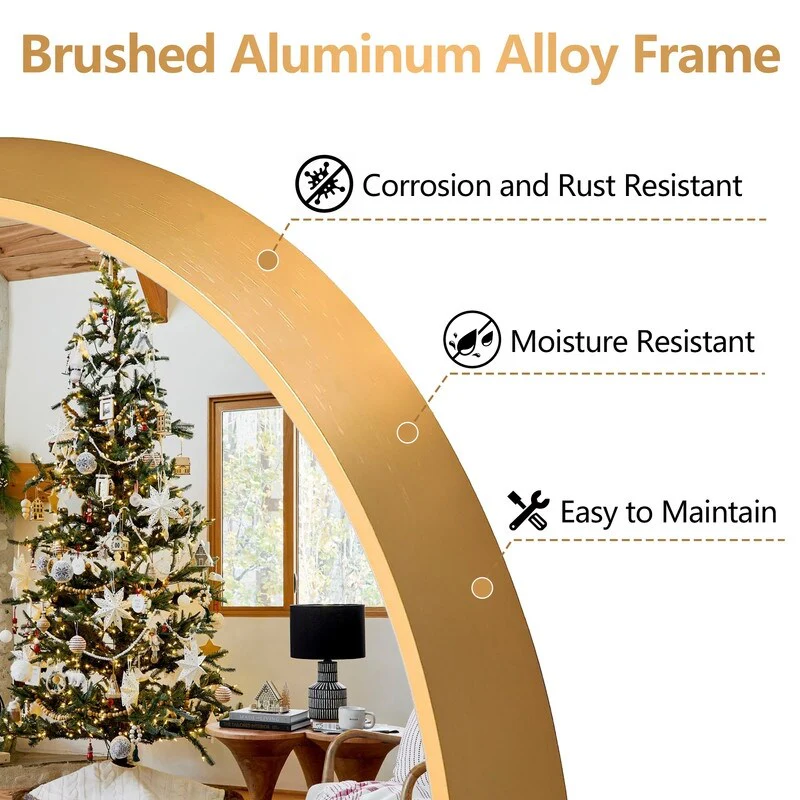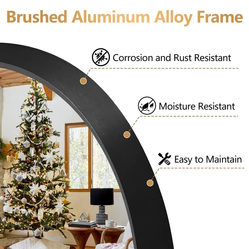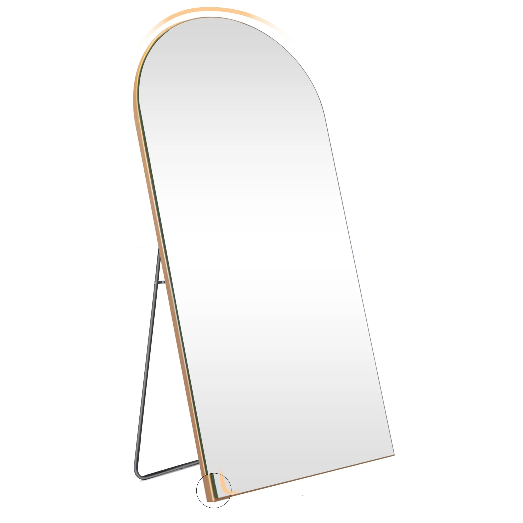 Upgrade your interior decor with this Modern Glam Arched-Top Full Length Floor Mirror with Stand. Perfect for clothing stores, salons, apartments or your own bedroom, this mirror is both decorative and functional. Correct your yoga poses in front of it, take a selfie or check out your workout results. With its U-shaped brackets and anti-skid pads, this mirror is also safe for homes with curious pets. This mirror is available in several sizes, it's free-standing and easy to hang on the wall, making it a great addition in any room. Crafted from high-quality MDF and glass, this mirror is sure to impress.