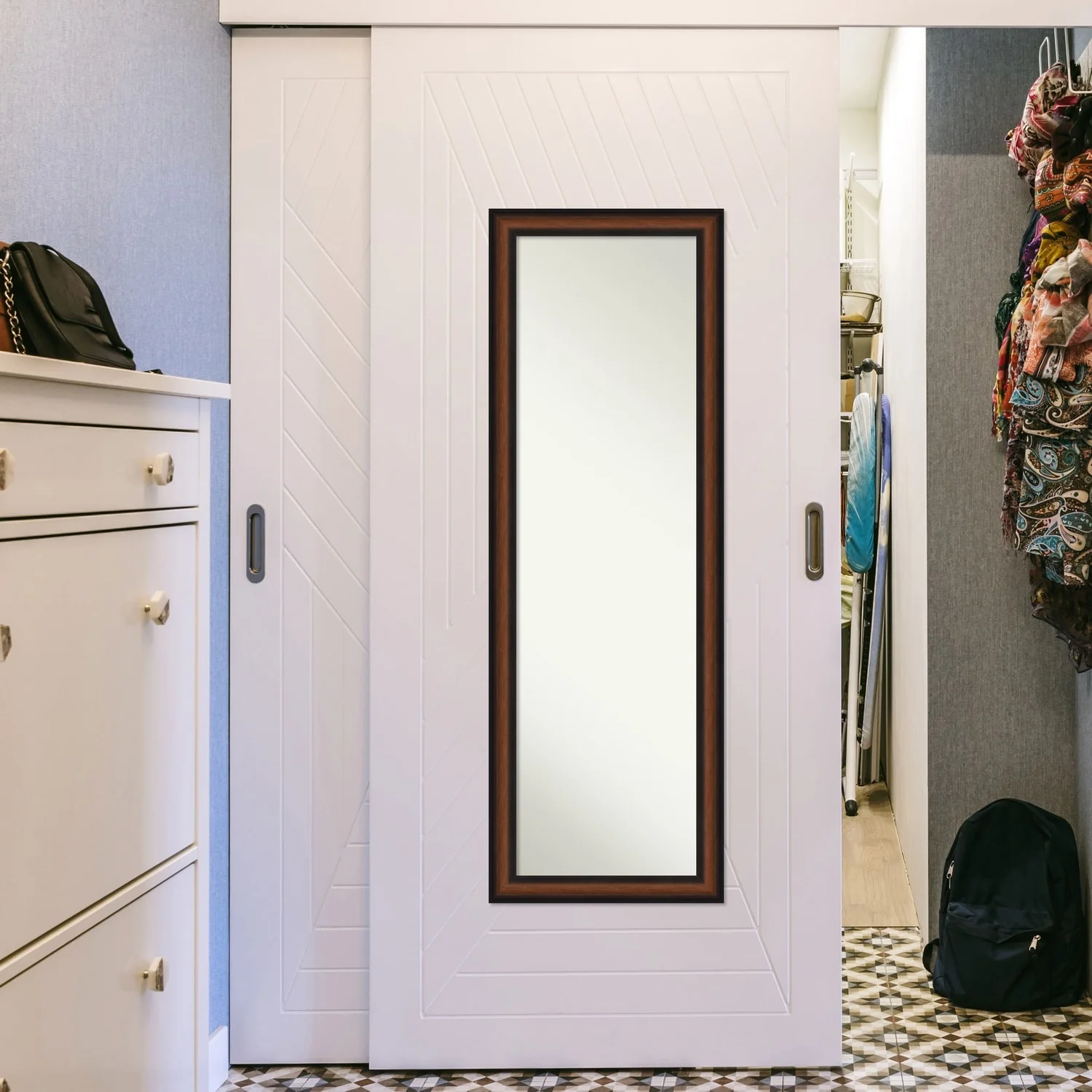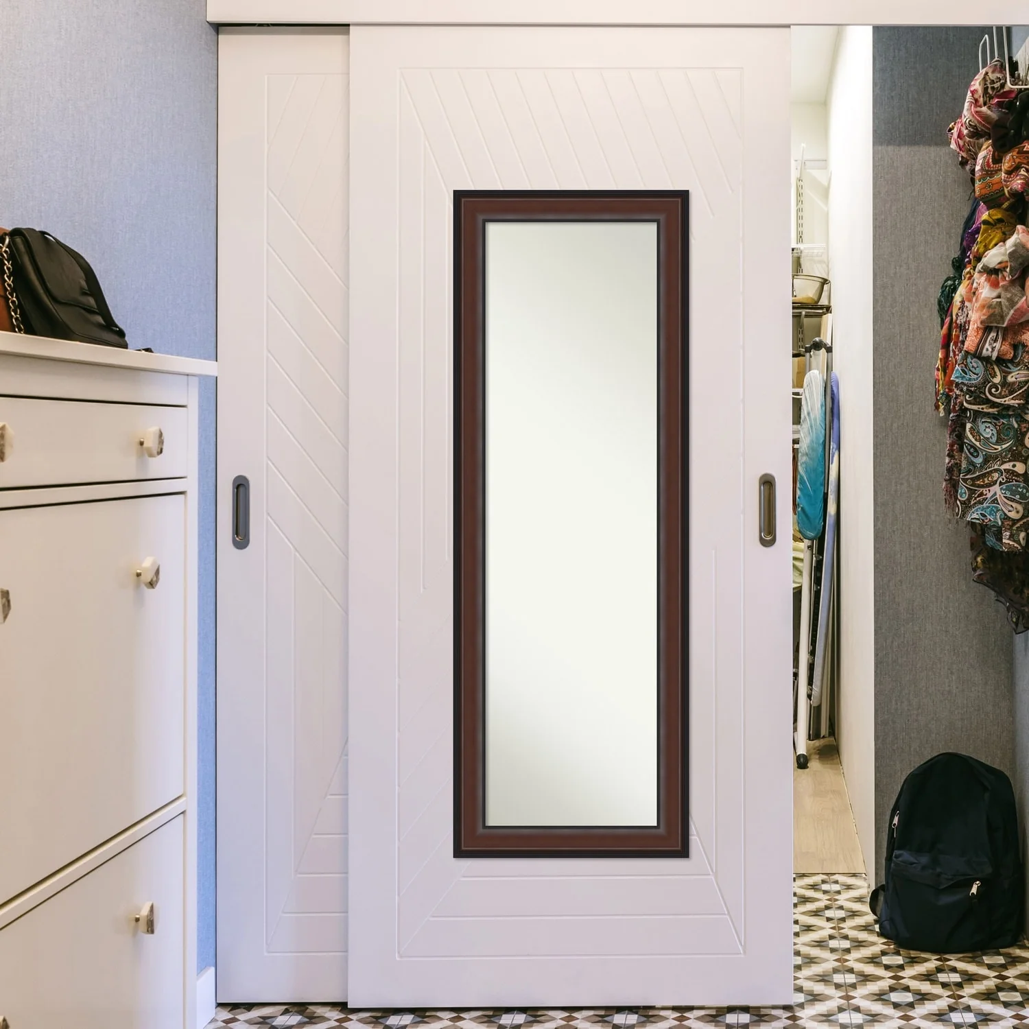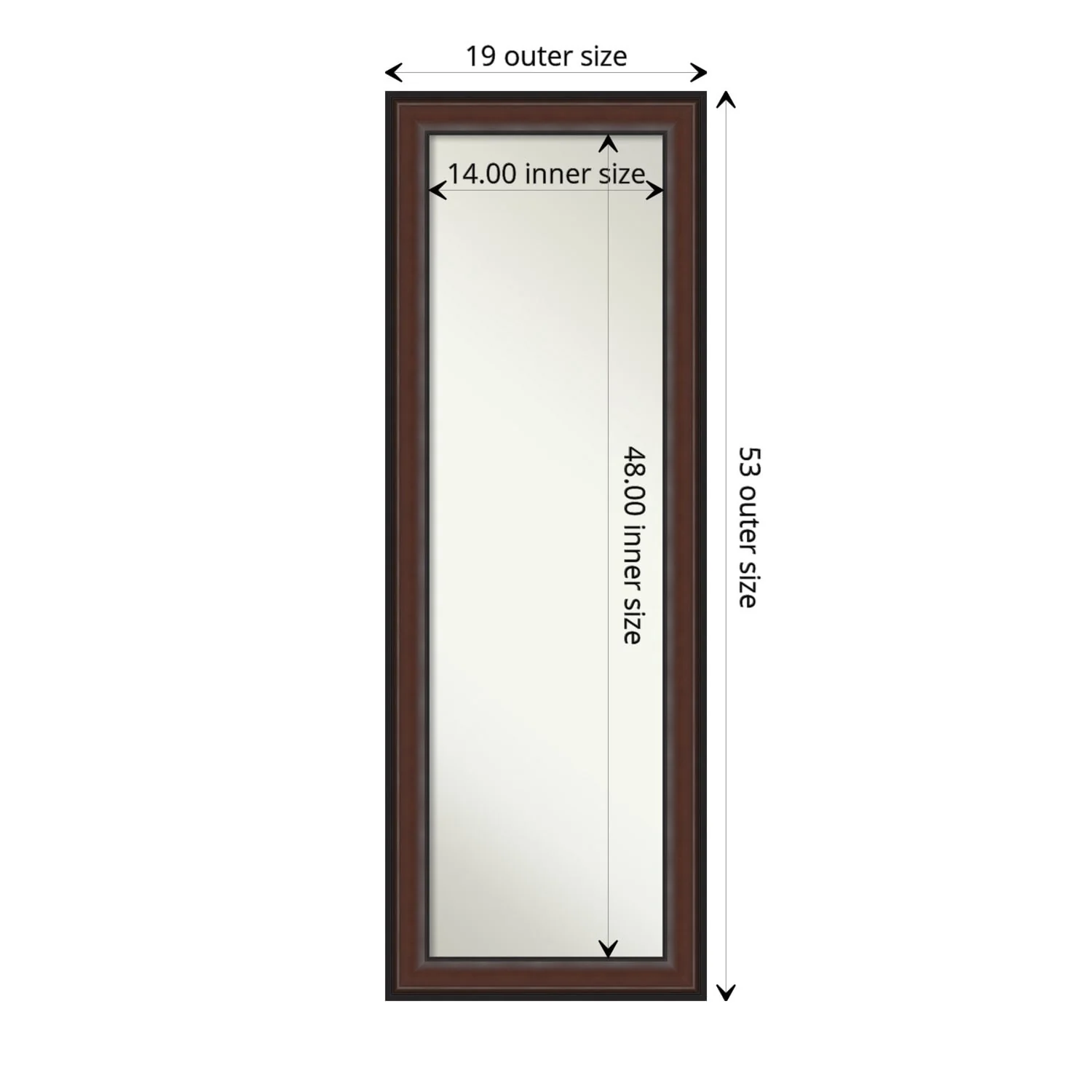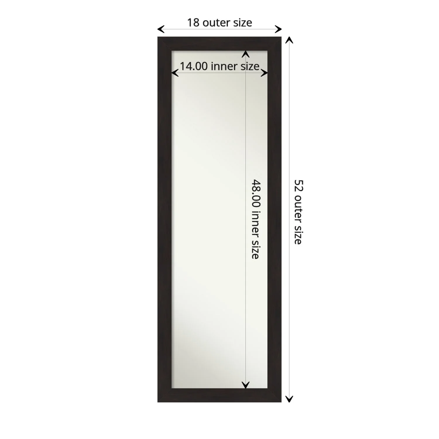 Elevate your home decor with this full-length Non-Beveled Mirror framed in the Furniture frame. Crafted with premium glass for a clear and undistorted reflection, this mirror has a non-beveled surface that maximizes the viewing area. The frame is made using traditional custom framing techniques and features an espresso brown finish with fine lines that create a subtle woodgrain. With two hooks for easy hanging directly on your door or wall, this mirror is perfect for adding a touch of elegance to your closet, bedroom, or bathroom.