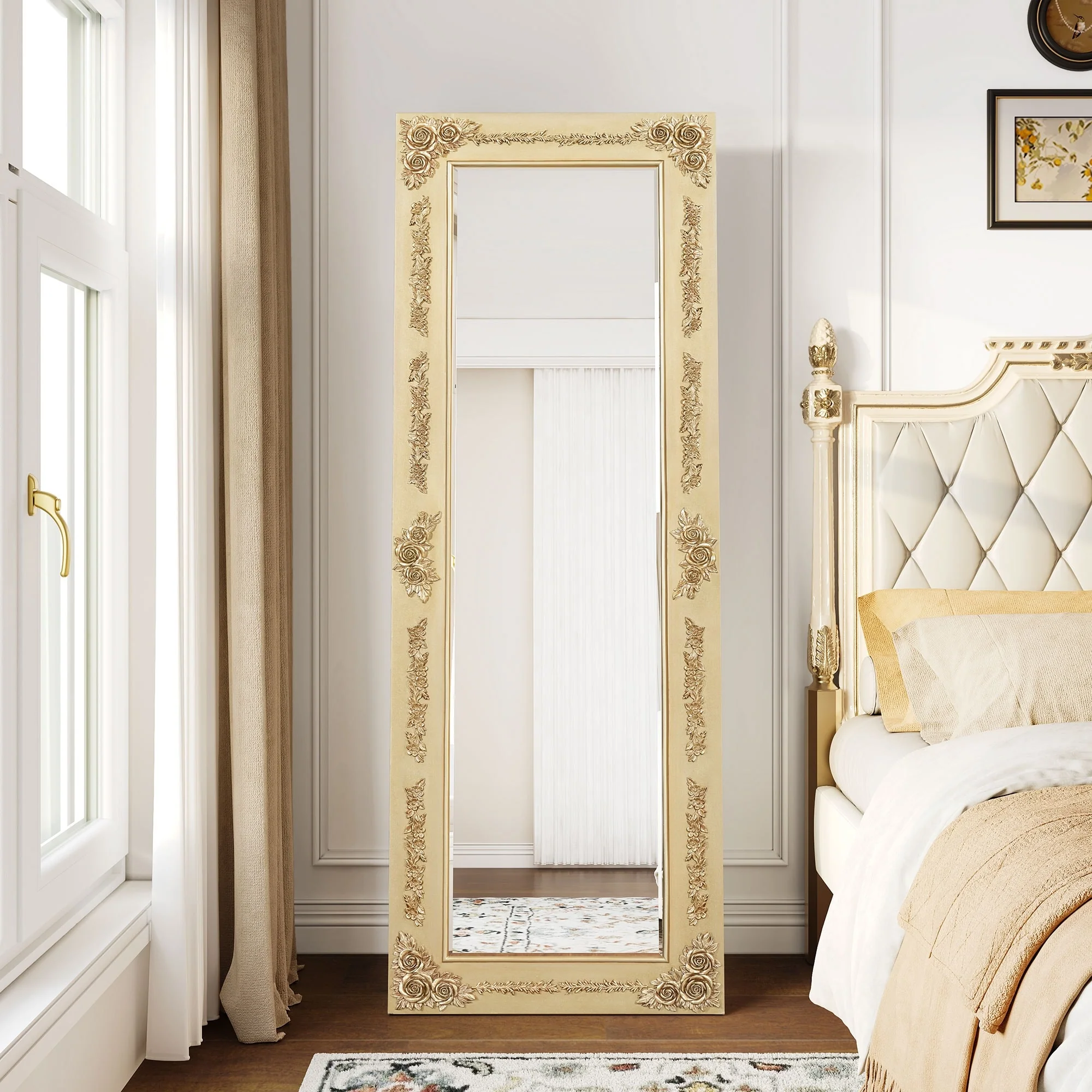 Moasis Floral Wooden Frame Full Length Floor Wall Mirror Standing Dressing Mirror