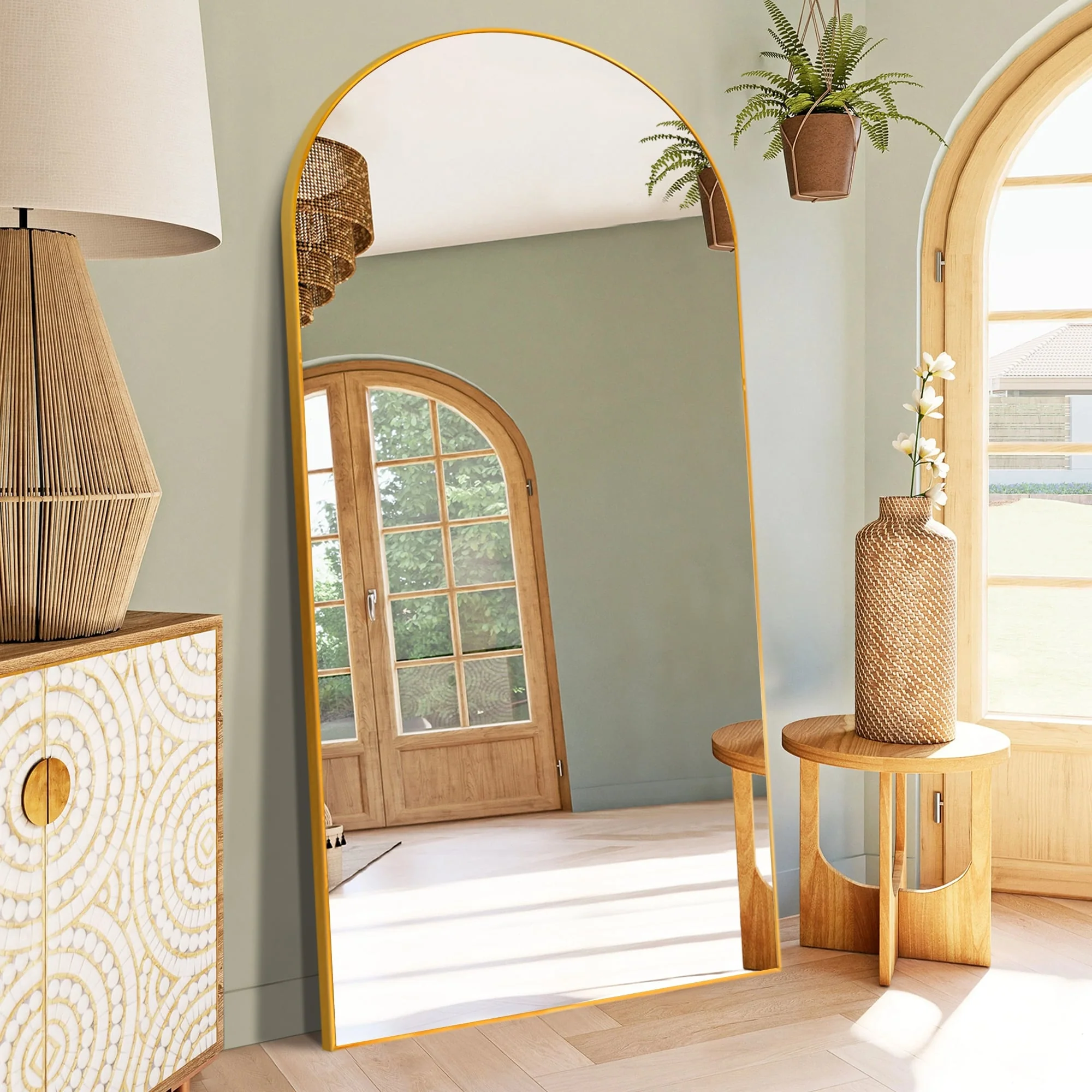 Modern Glam Wood Frame Arched Full-length Floor Mirror for Bedroom,Entryway