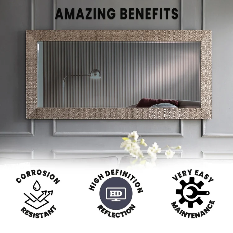 Mosaic Frame Full Length Mirror - 65.5 x 31.5 Inches, Free Standing or Wall Mounted for Living Room - Champagne
