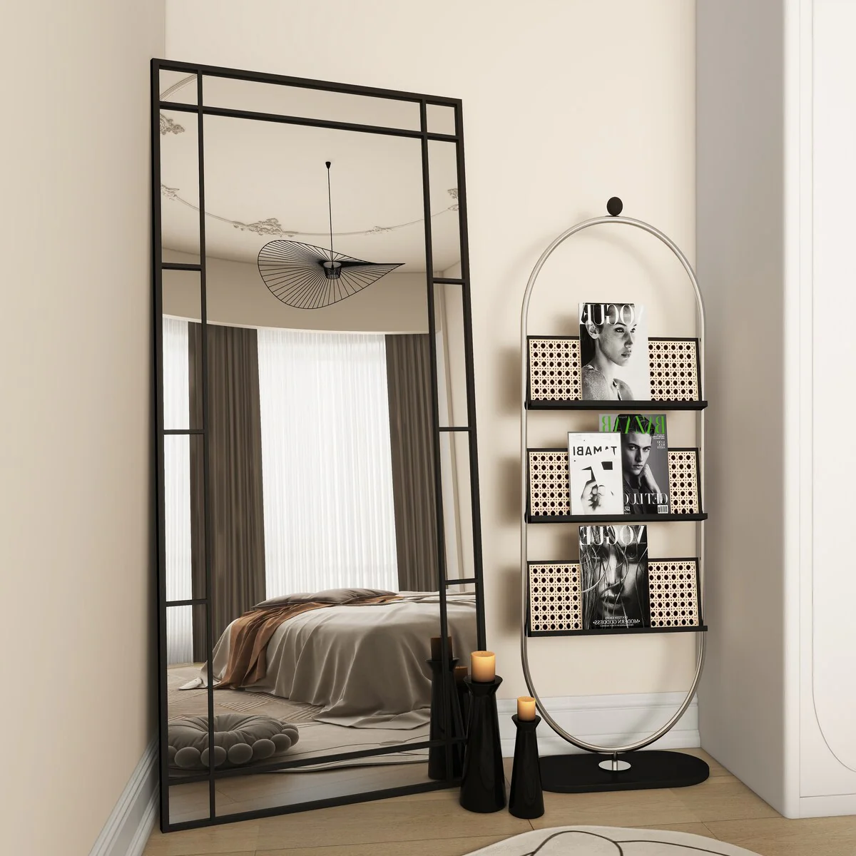 Metal Rectangle Full Length Mirror Pane Grid Floor Mirror