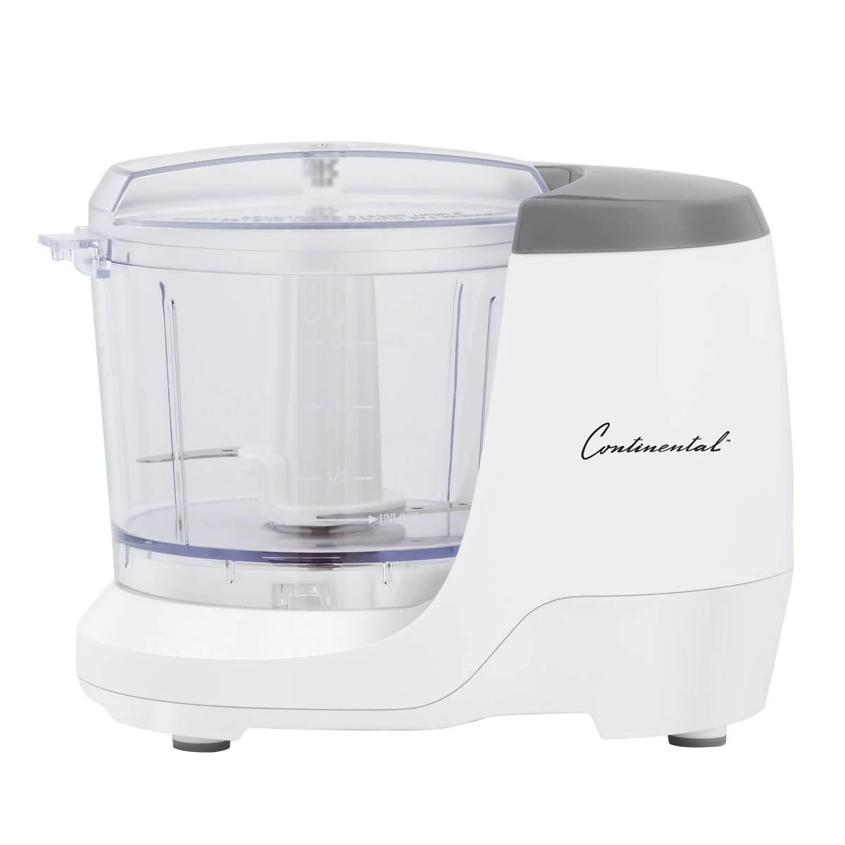 Save time and kitchen prep with this compact chopper with quality stainless steel blades for mincing parsley, basil, chives, or garlic. It will puree small amounts of cooked fruits and vegetables for baby food or as bases for sauces and soups. Powerful one button operation is easy to use. Chopper comes with a safety interlocking lid with non-skid feet and clear plastic bowl. The durable plastic bowl and removable stainless steel blades are dishwasher safe for cleaning. 1.5-cup capacity is great for guacamole, sauces, garlic, and more. Do not process cheese, coffee beans, or whole squares of chocolate in this product, as product damage could result. UL Listed with a 2 year limited manufacturer warranty.
