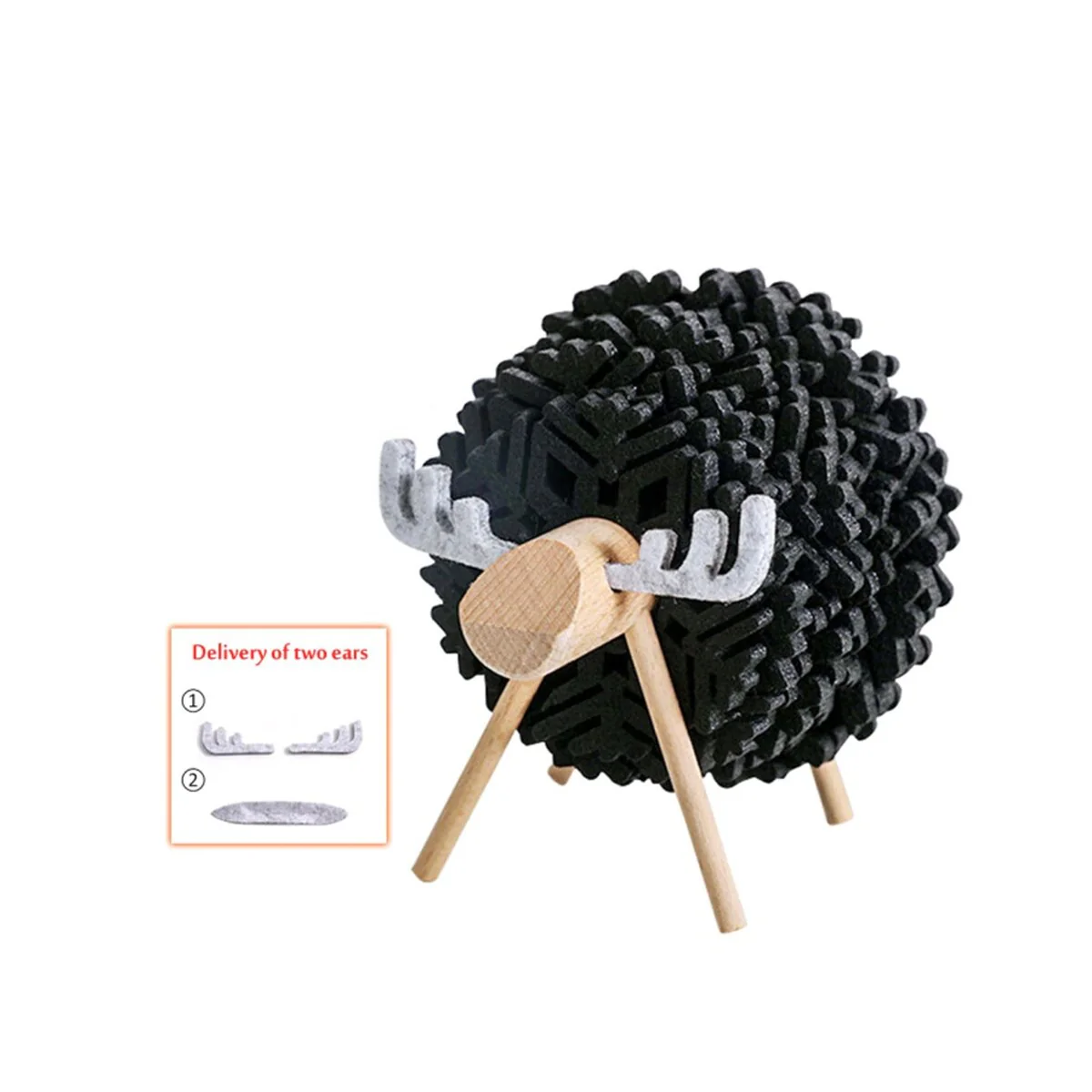 Material: felt + wood, etc.Size: 11*9*9cm.Color: white, black, gray