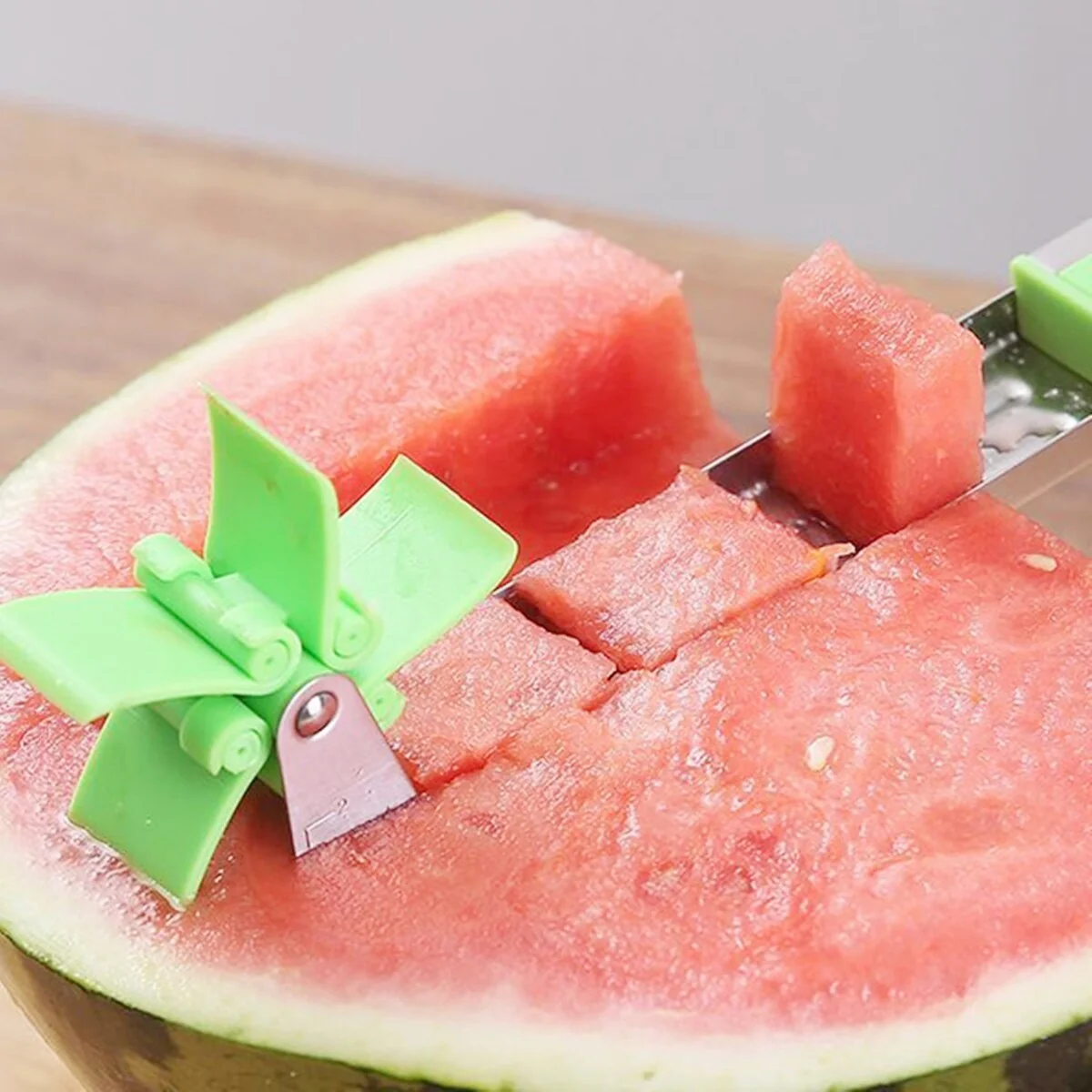 Effortlessly cuts watermelon into neat, uniform slices