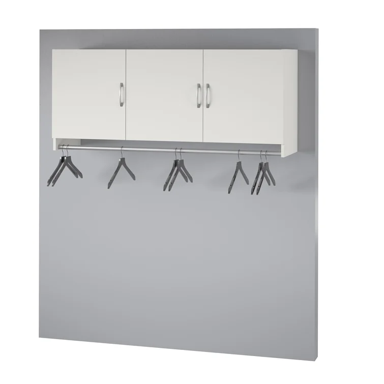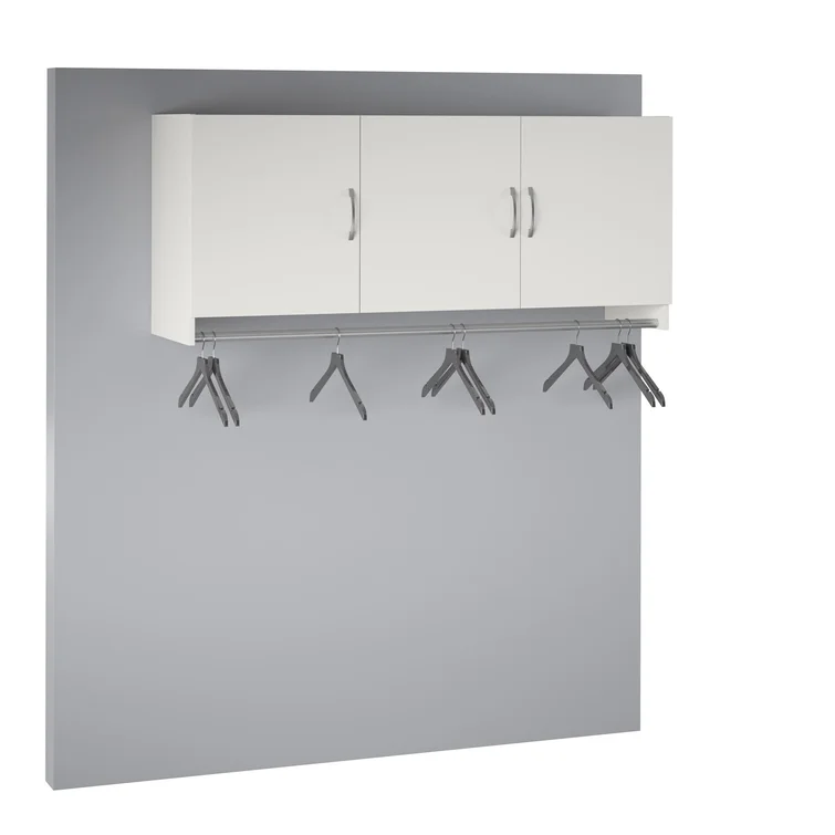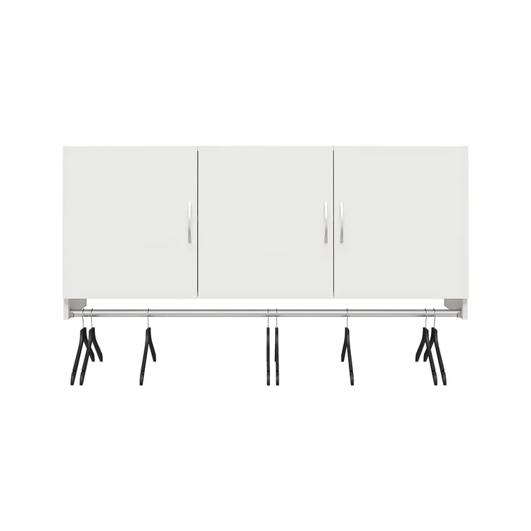 This 3-door hanging cabinet provides extra storage for any unused wall space. It comes with a metal rod for coats, backpacks, and other items, so they're ready for you as you head out the door. Made from engineered wood with a neutral finish, it easily matches your current aesthetic. Inside the three doors are two cabinets with shelf space for clothes, blankets, and more. It measures 23.6' tall and 54' across, so it's ideal for laundry rooms, mudrooms, and garages. Use it as a standalone piece, or combine it with additional storage items (sold separately). Two adults are recommended to assemble, with an anchor included.
