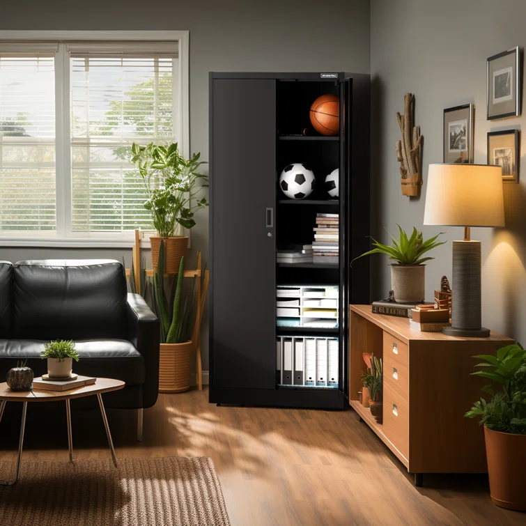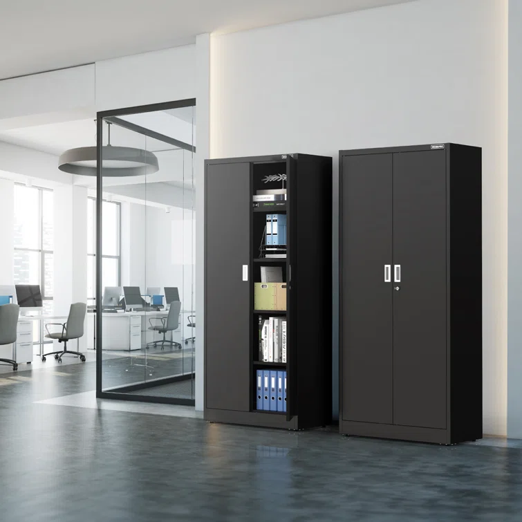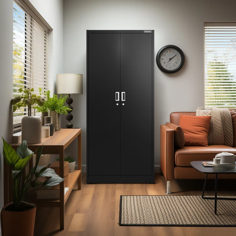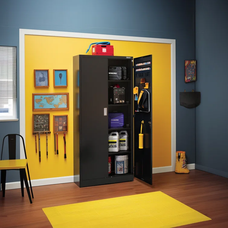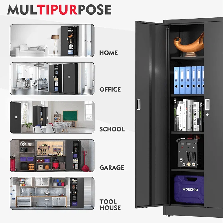 Storage Cabinet, Metal Garage Cabinets with Doors and Shelves, 71x 31-1/2x 15-3/4