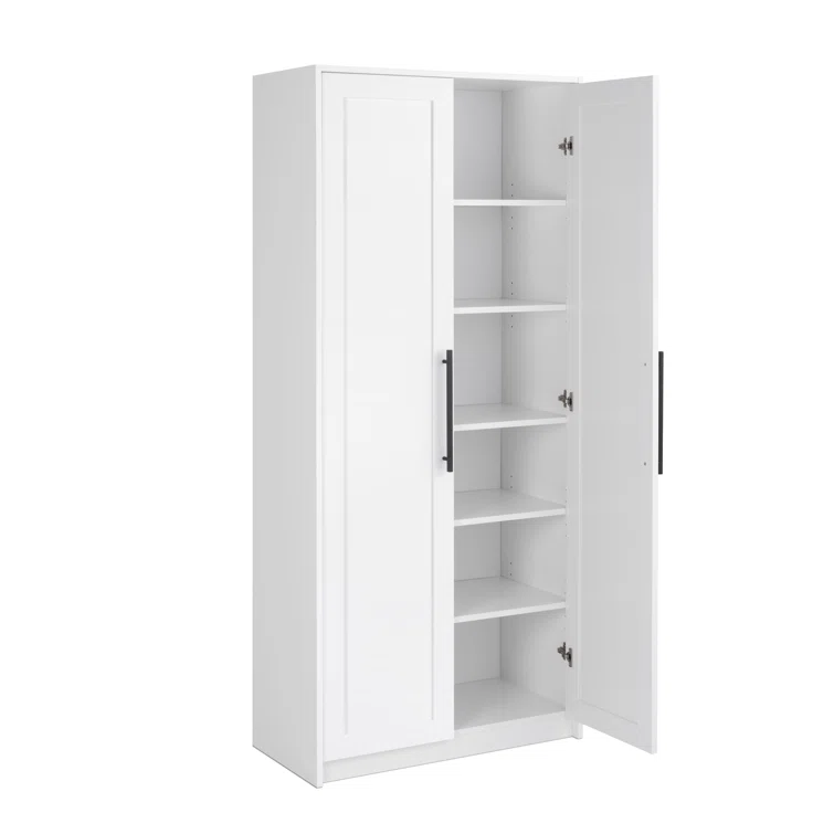Introducing our Elite Premium Home Tall Storage Cabinet, a versatile black storage cabinet ideal for every room. This tall storage cabinet with doors and shelves is perfectly designed as a kitchen pantry cabinet, a bathroom storage cabinet, or a storage closet. Embodying class and functionality, it can be a kitchen storage cabinets pantry, pantry cabinets for kitchen storage, or a tall kitchen pantry cabinet.The design features two modern and sleek doors with six-way European hinges for a personalized fit. Inside, you'll find 4 adjustable shelves and 1 fixed shelf. The storage cabinet is 7” taller than our standard Elite pantry cabinets with doors and shelves, making it a great food pantry cabinet for the kitchen or garage. The sleek black finish of this shaker storage cabinet with doors and shelves gives an elegant touch to any décor.Constructed from durable, non-toxic, and CARB-2-compliant laminated composite woods, this tall storage cabinet with doors and shelves guarantees long-lasting and eco-friendly storage. Whether you need bathroom organizers and a storage cabinet, a storage cabinet for the bedroom, or kitchen organizers and a storage cabinet, the Elite Premium Home Storage Cabinet fits the bill. It can also function as a 'mueble de baño' or as a bathroom towel storage cabinet.This pantry cabinet's free-standing can suit various space needs. The cabinet arrives flat-packed with an easy-to-follow instructional guide for a hassle-free assembly. Our Elite Collection can be your go-to for pantry organizers and storage cabinets or kitchen pantry cabinets free-standing. This cabinet can also be paired with our wooden closet organizers and storage, to provide comprehensive storage solutions. Amplify your space with the Elite Premium Home Storage Cabinets with doors and shelves.
