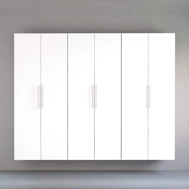 The storage cabinet offers versatility for your ever-changing storage needs in the garage, laundry room, office, or workshop. The cabinets mount securely to the wall with a heavy-duty metal rail and hook system. The wall-mounted feature ensures easy cleaning beneath the cabinets and protects your stored items from water and dirt. The product is constructed using laminated composite wood and features metal handles and adjustable hinges. This product ships ready to assemble and includes all hanging rails and fastening bolts. Add other cabinets to create a storage system to convert any cluttered room into an organized space. Constructed from non-toxic, CARB-2 compliant, laminated composite woods. Ships ready to assemble includes an instruction booklet for easy assembly and has a 5-year manufacturer’s limited warranty. Manufactured in Canada and meets all North American safety standards. Set J includes a 1 x 30' shoe storage cabinet and a 2 x 30' storage cabinet.