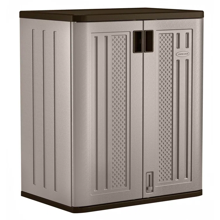 If you spend a lot of time workin' in the garage, make sure your storage and organizational skills are on point with this 2-pack of Suncast resin garage base storage cabinets. Store your garage goodies of up to 75 pounds in style and with functionality. This storage solution comes with 2 shelves, and 9 cubic feet of room, is padlock ready and boasts a durable resin construction. The multi-wall panels are strong and stable, the metal reinforced shelving will never bend, and the platinum color looks stunning in your garage. Store a few of your favorite things safely and soundly with this Suncast resin garage base storage cabinet.
