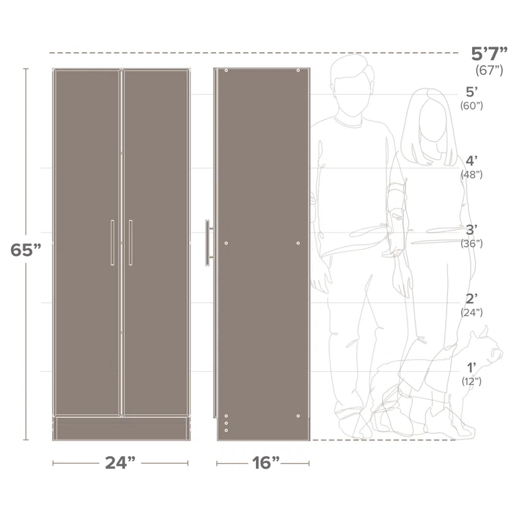 - ASSEMBLED DIMENSIONS & WEIGHT: Cabinet- 16' D x 24' W x 65' H, Total weight- 95 lbs., All pieces arrive ready to assemble in 1 Box