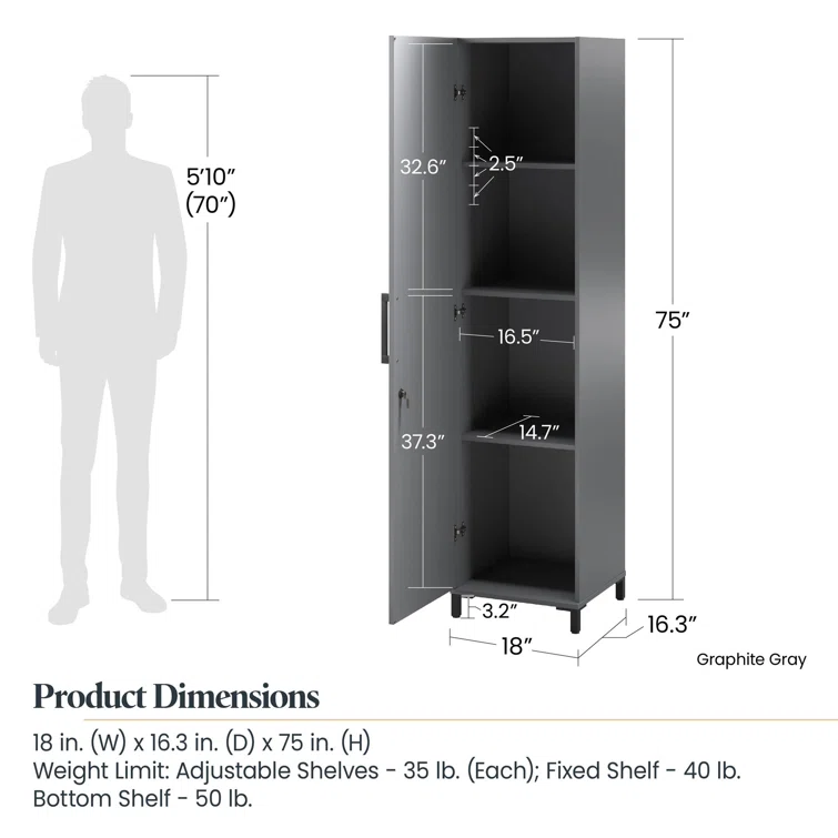 Reichard 18 W x 16.34 D x 74.92 H Tall Garage Cabinet