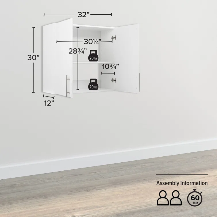 Introducing the versatile Prepac Elite Wall Mounted Storage Cabinet, a fundamental organization and storage solution for your home. This compact yet efficient utility storage cabinet features three easy-pivot doors with six-way adjustable European-style hinges and two adaptable shelves. Displaying a simple, clean aesthetic, this cabinet boasts a fresh white laminate finish, elegantly accented by satin nickel-finished metal handles. In homes or salons, these cabinets for storage with doors are designed to be safely installed above standard-sized appliances, making excellent laundry room storage cabinets or over toilet cabinets. The innovative design allows for doors to swing open to either the right or the left, providing flexibility based on your specific room layout. This robust and wall-mounted cabinet is constructed in North America with durable, CARB-2-compliant laminated composite woods, promising quality, and non-toxic reliability. The wall cabinets with doors and shelves ship in an intelligently compact flat-packed form including an instructional booklet, ensuring straightforward assembly upon arrival. Perfect as a small storage cabinet in kitchens, utility cabinet with doors, bathroom cabinet storage, pantry cabinet with doors and shelves, or even a garage wall cabinet, the unit can be stylishly paired with other wall cabinets to establish a cohesive storage system. Rising above typical bathroom organizers and storage cabinets, the Prepac Elite also makes a fantastic addition to salon cabinets and storage systems. Transform your space from a chaotic area into a haven of organized serenity with this white storage cabinet with doors. Whether you need kitchen cabinets or a food pantry cabinet for the kitchen, this cabinet optimizes your storage needs. This cabinet is also suitable for use as a bathroom towel storage cabinet or a bathroom organizer and storage cabinet. From kitchen pantry cabinets to bathroom cabinets and even estante para baño, the Prepac Elite Wall Mounted Storage Cabinet is your ultimate solution for stylish, robust, and organized storage.