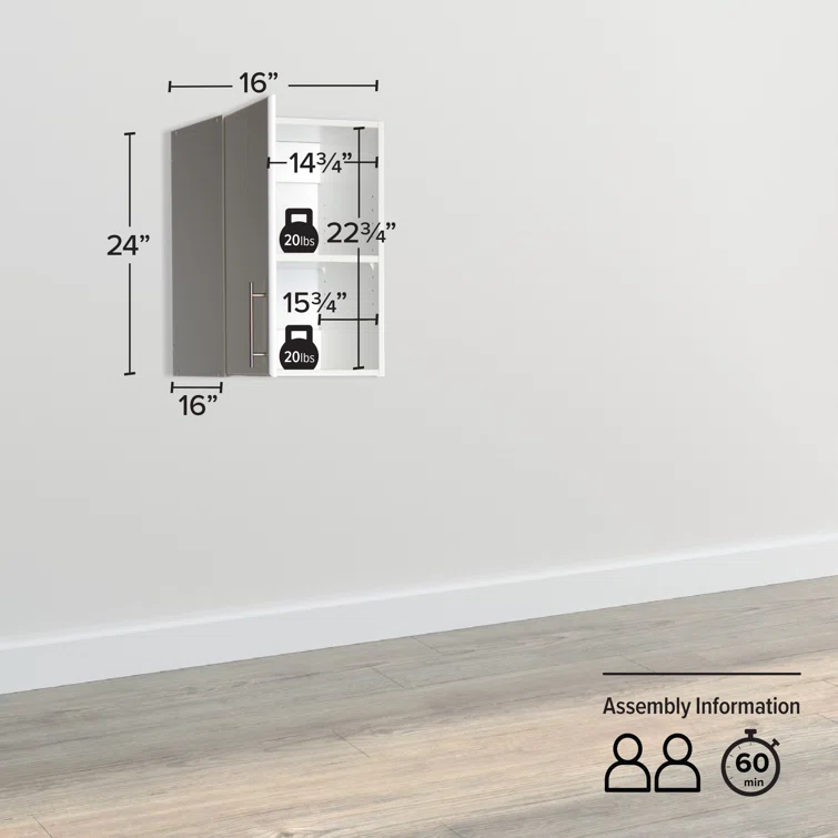 - A deep storage cabinet offers more room: A 16' D wall cabinet offers 34% more storage space than standard storage cabinets while the 1 adjustable shelf holds up to 20 lbs.