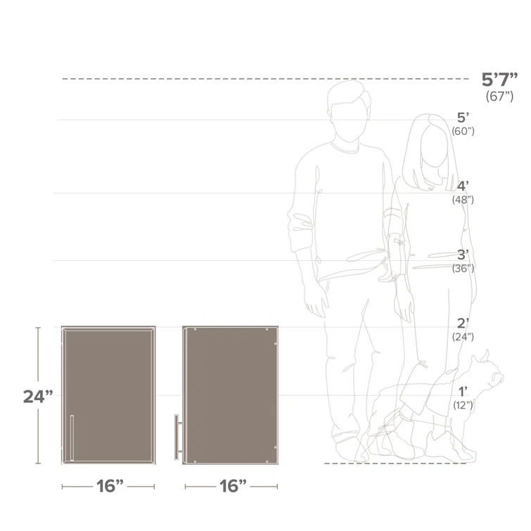 - Assembled dimensions & weight: Cabinet- 16' D x 16' W x 24' H, Total weight- 33 lbs., all pieces arrive ready to assemble in 1 box.