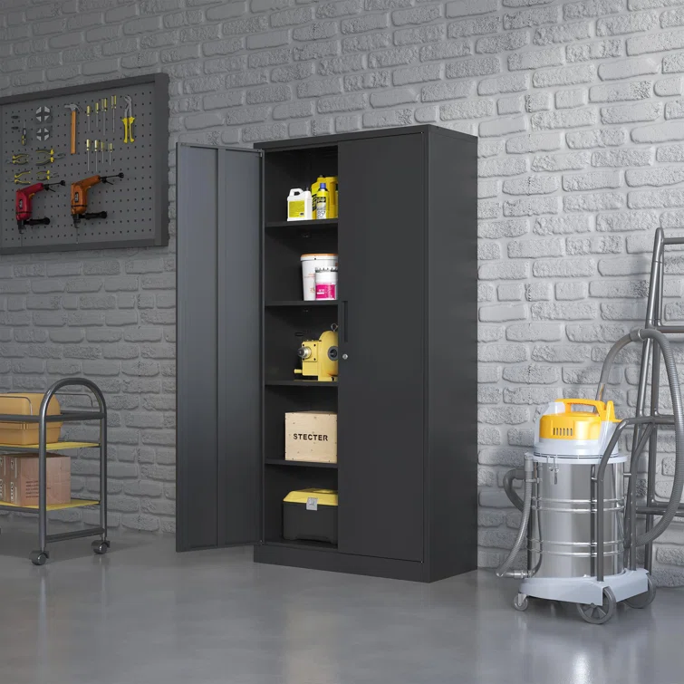72 Metal Garage Storage Cabinets with Lock,Black Storage Cabinet with Doors and Shelves