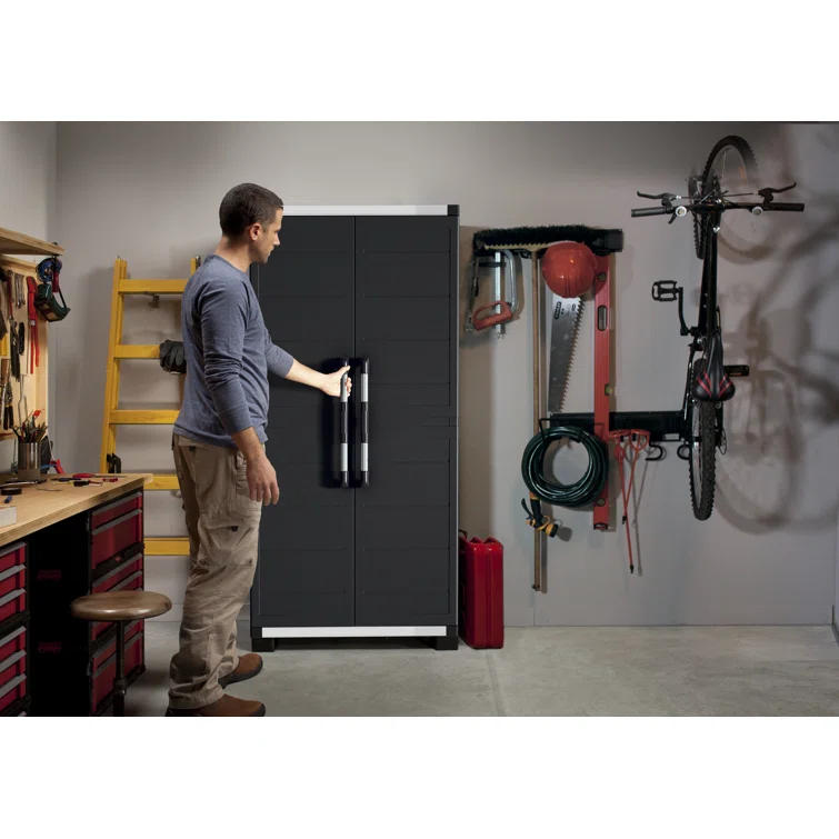 Keter XL Pro Durable Resin Storage Cabinet and Tool Storage Organizer with Lockable Doors and Shelves for Home Garage or Workshop, Black