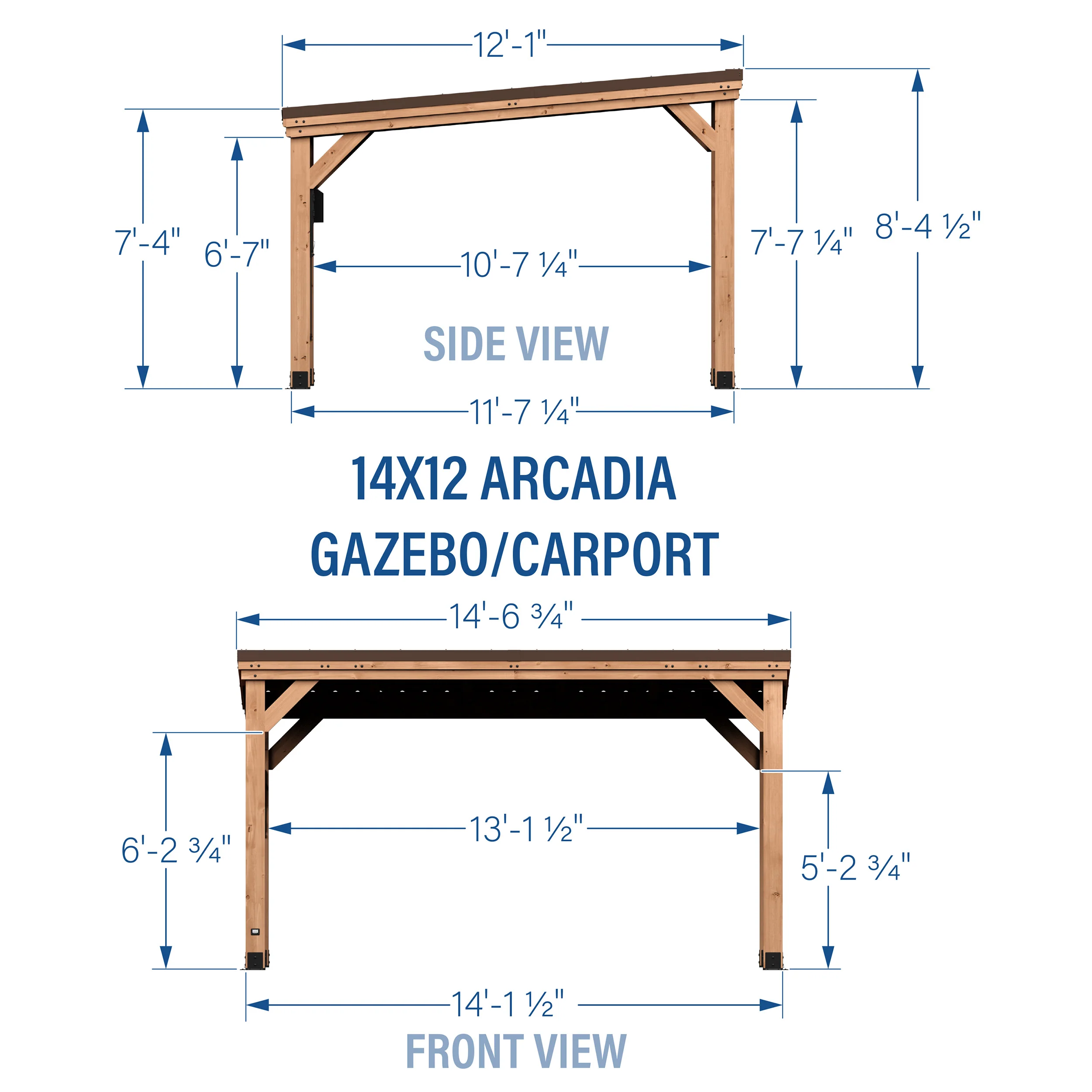 Modern 14x12 wooden gazebo with durable galvanized steel slope roof.