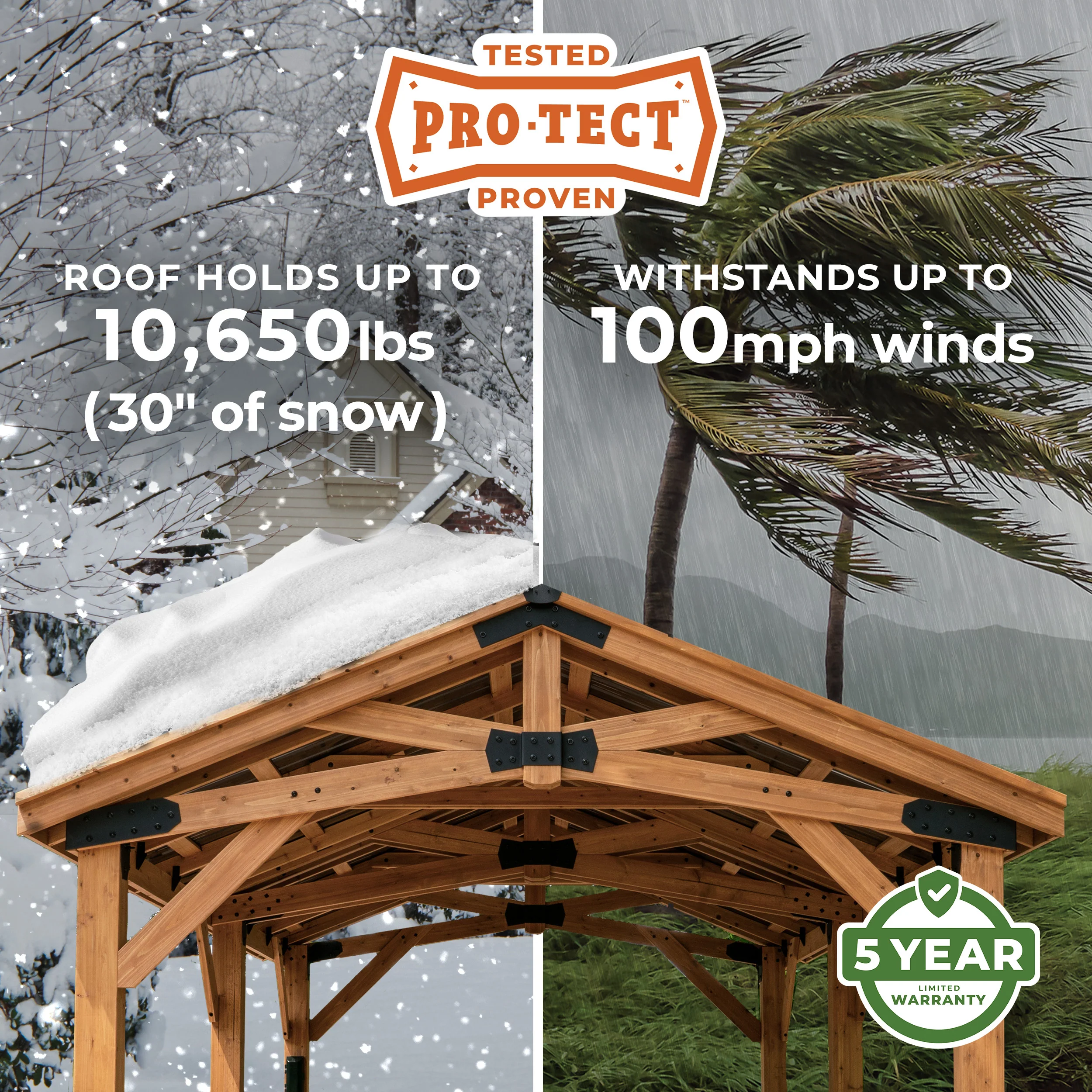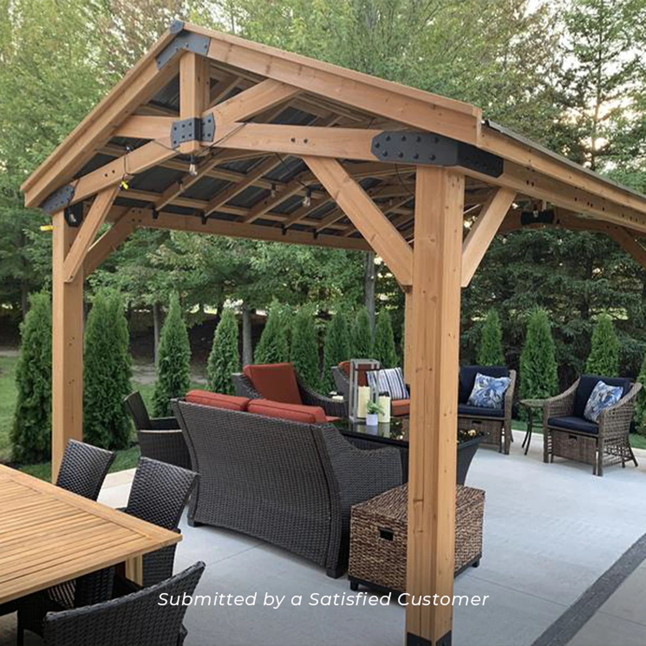 A sturdy cedar frame and strong steel roof provide long-lasting durability and the timeless design will enhance the value and aesthetics of your space.