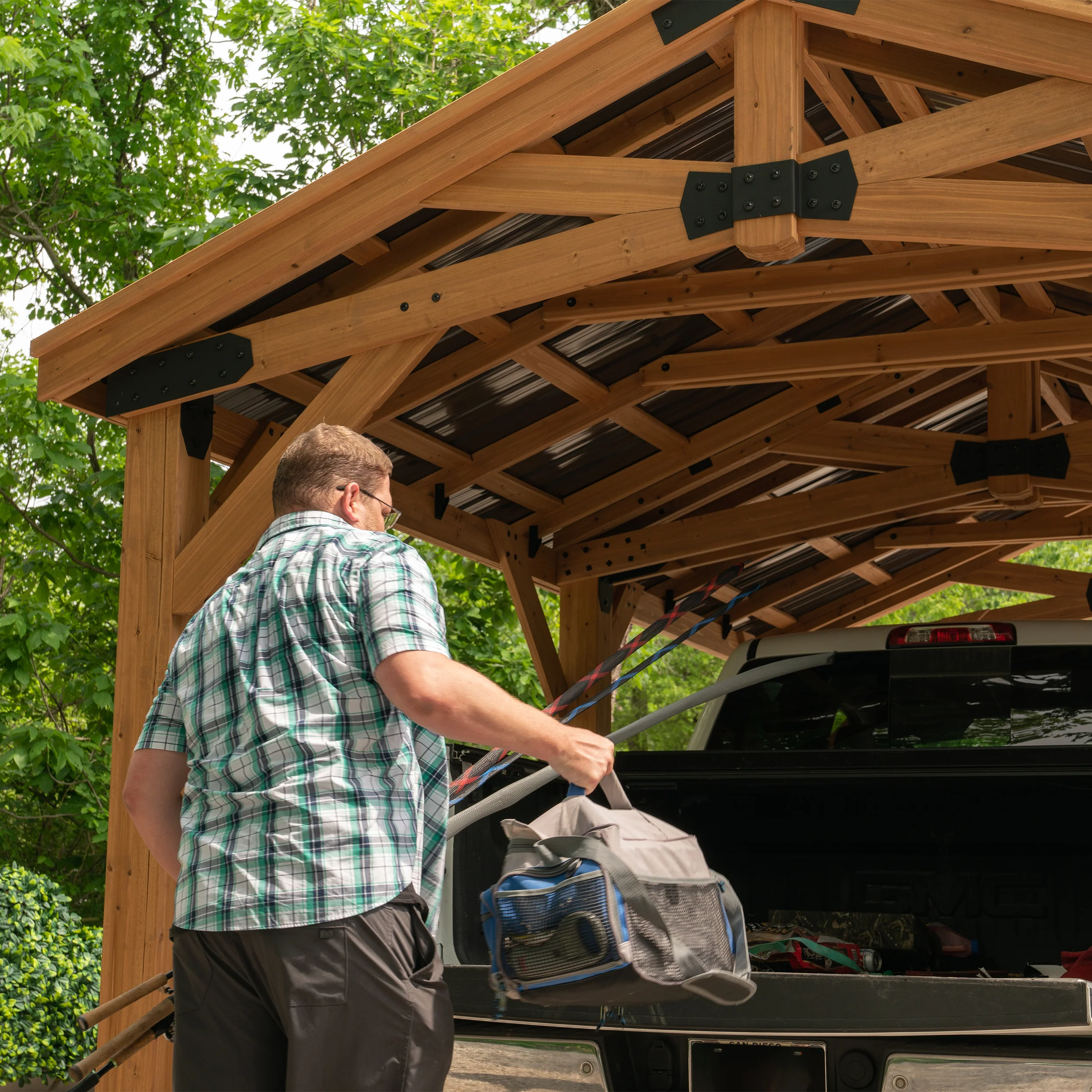 The 24x12 Norwood also features our exclusive PowerPort™ with 3 outlets and 3 USB ports to power up lights, music and much more. The possibilities are endless under the stately cedar 24x12 Norwood Carport/Gazebo/Pavilion!