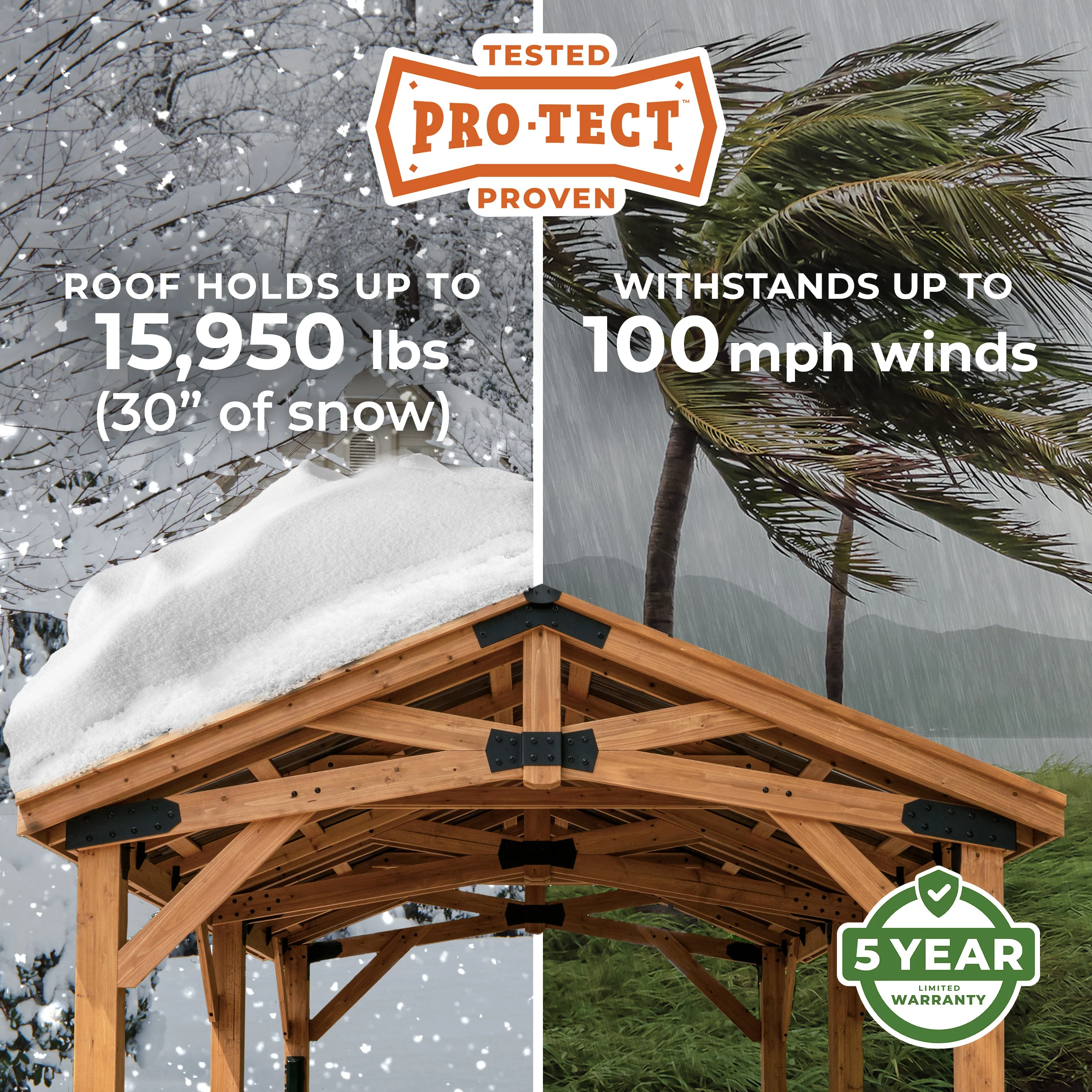 The expansive 24x12 Norwood Carport/Gazebo/Pavilion has versatile functionality and can be used for relaxing and entertaining or as an alternative to a garage! Protect vehicles, boats, trailers and more from the damaging elements or enjoy an alfresco dinner under the shade of the roof with friends and family. The PRO-TECT™ Tested & Proven 24x12 Norwood is able to withstand 15,950 pounds of snow load (or up to 30 inches of snow) and up to 100 mph winds* ensuring years of worry free use.