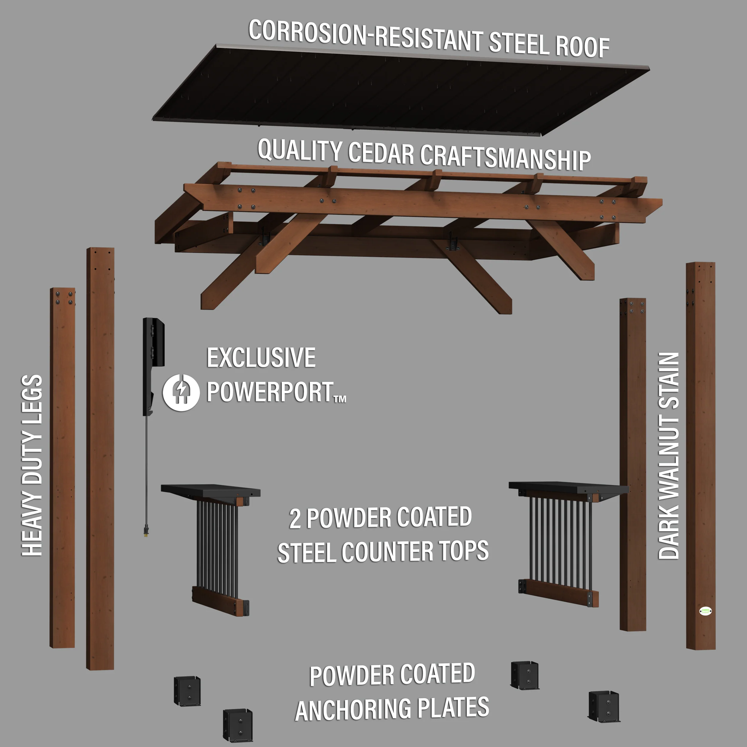 With space for grills up to 70” wide — and featuring our exclusive PowerPort™, steel countertops, customizable accessory hooks, and more — this grill gazebo is going to redefine what it’s like to cook and eat outdoors.