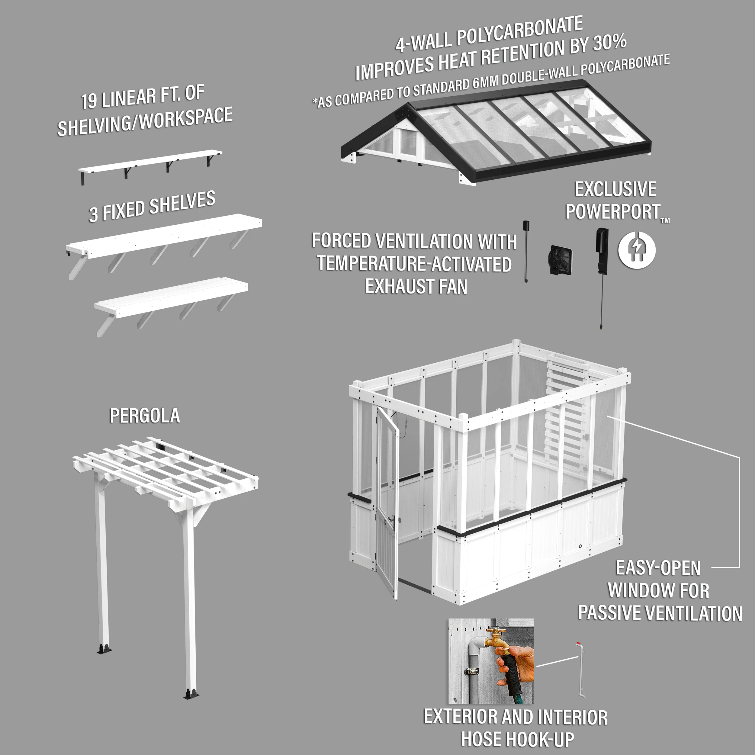 With the perfect blend of forced and passive ventilation, your plants will thrive year-round. Plus, with plenty of shelving, a hose hook-up, and PowerPort™, the only thing missing is you!