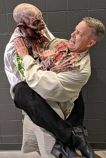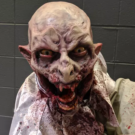 Ambrose The Immortal is our Attack Vampire Puppet that fits perfectly in a haunt attraction or wandering the streets entertaining and scaring up more business! This Attack Vampire puppet comes with all the amazing features as our Attack Line Puppets including a 2X Vampire Hunter shirt/harness that his hands attach to for that just grabbed you look.