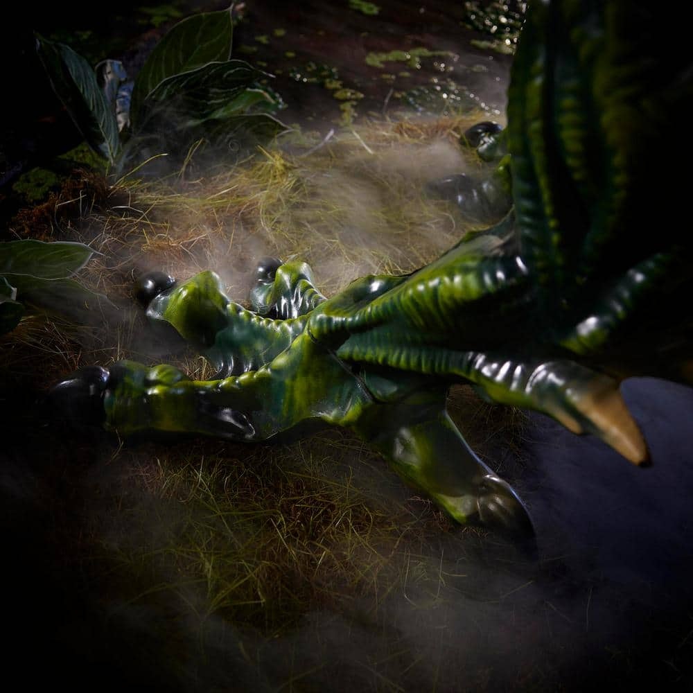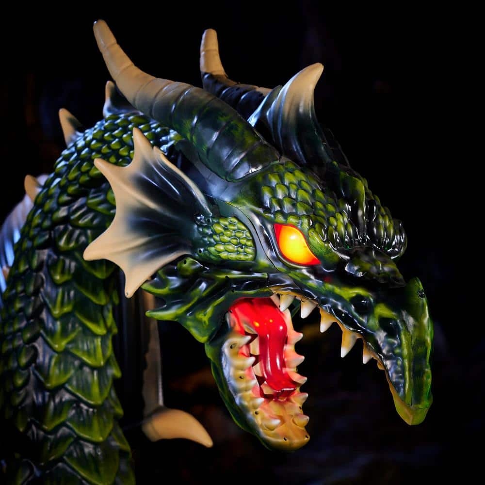 Enlist this 6 ft. Animated Giant Green Dragon to guard your front yard this Halloween. With glowing LED eyes, large wings and realistic scaly skin, this dragon will impress all your guests. The animated mouth and roaring sounds create an immersive experience and the quality materials make this dragon a part of your collection for years to come.