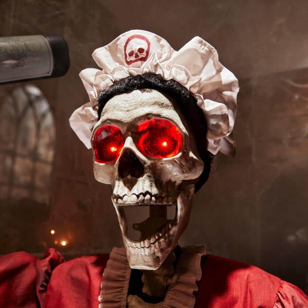 You'll be sure to give your Halloween guests quite a scare with this 5.5 ft. Animated Maid. It features animated limbs that swing. The motorized jaw and arms make this the perfect addition to your holiday decor.