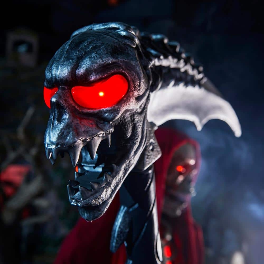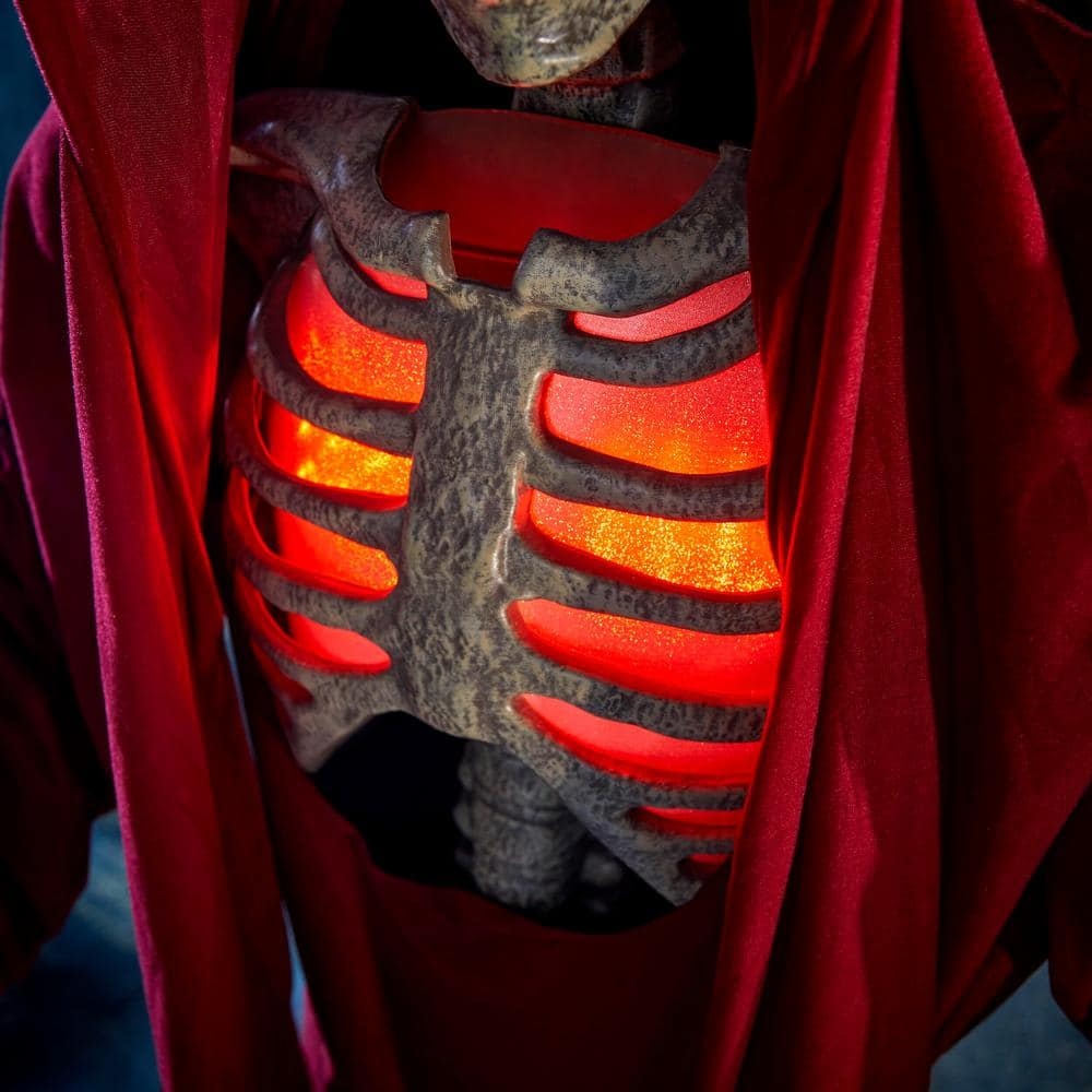 Add this 8 ft. Animated Smoldering Reaper of Souls to your home as a wickedly awesome Halloween decor option. It features a sensor that activates movement, lights and speech. The glowing red LED light-up eyes can cause quite the terror!