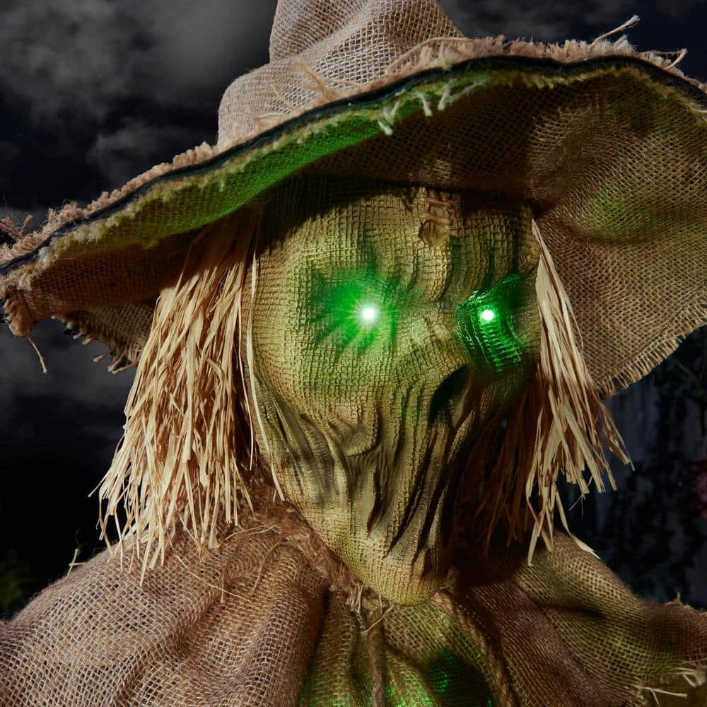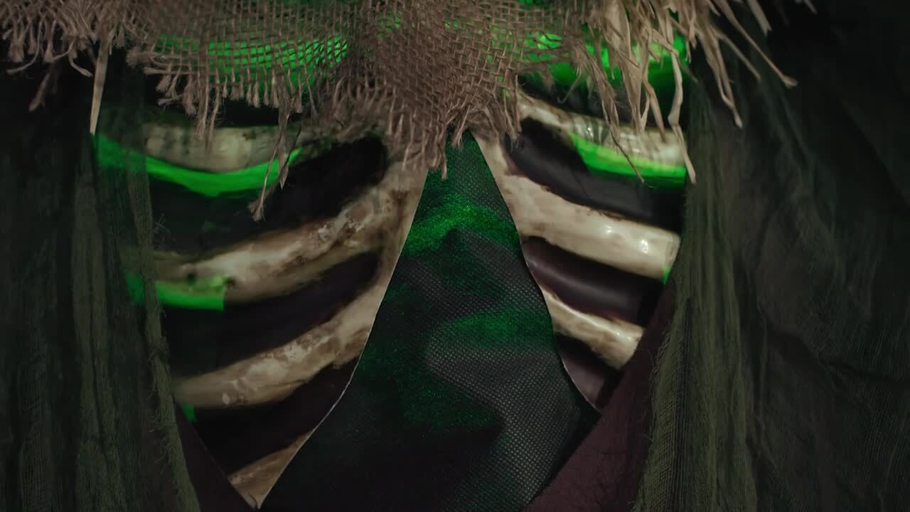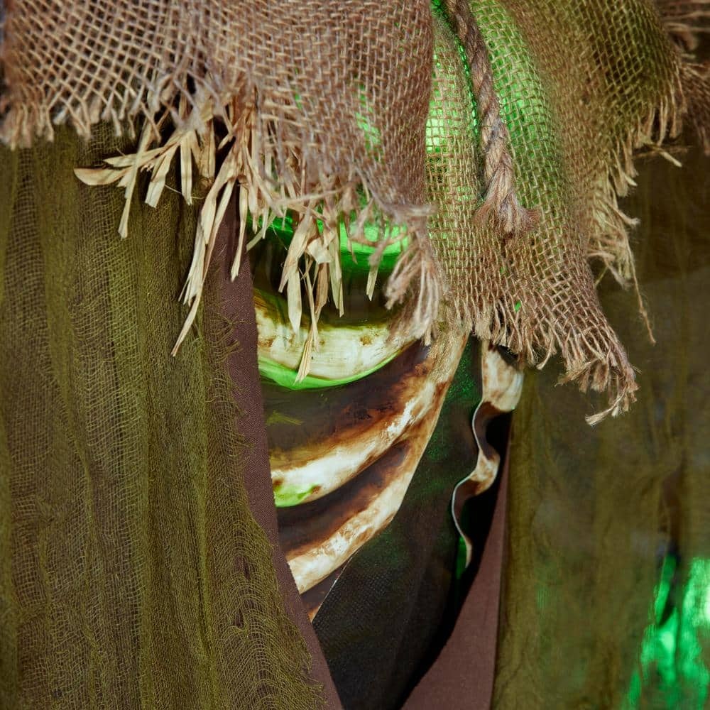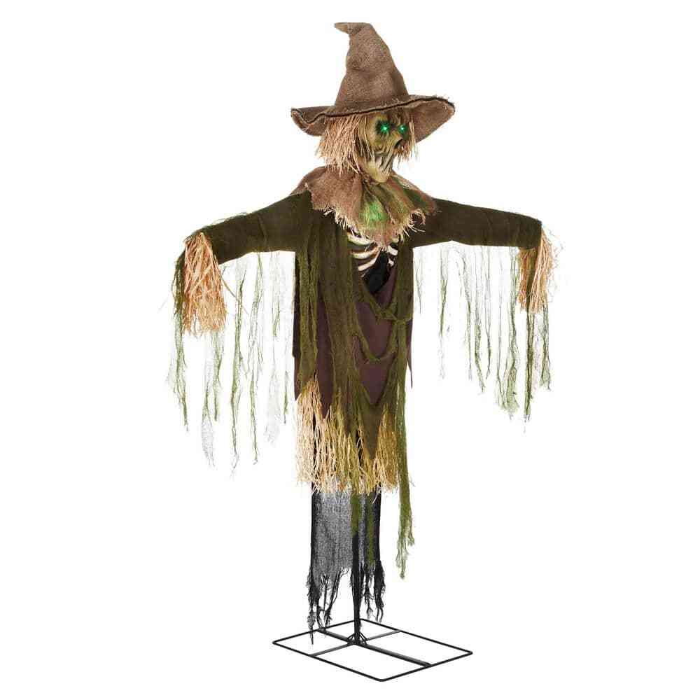 Make a scary statement with this 7 ft. Animated Swamp Scarecrow. This creepy animatronic has a footpad and motion sensors that make the scarecrow snap its arms and make spooky noises. Combine it with your skeleton, witch and ghost figures for an extra scary scene. The battery pack makes this a great choice for empty corners and dark hallways where you don't have access to outlets or can't have loose cords.
