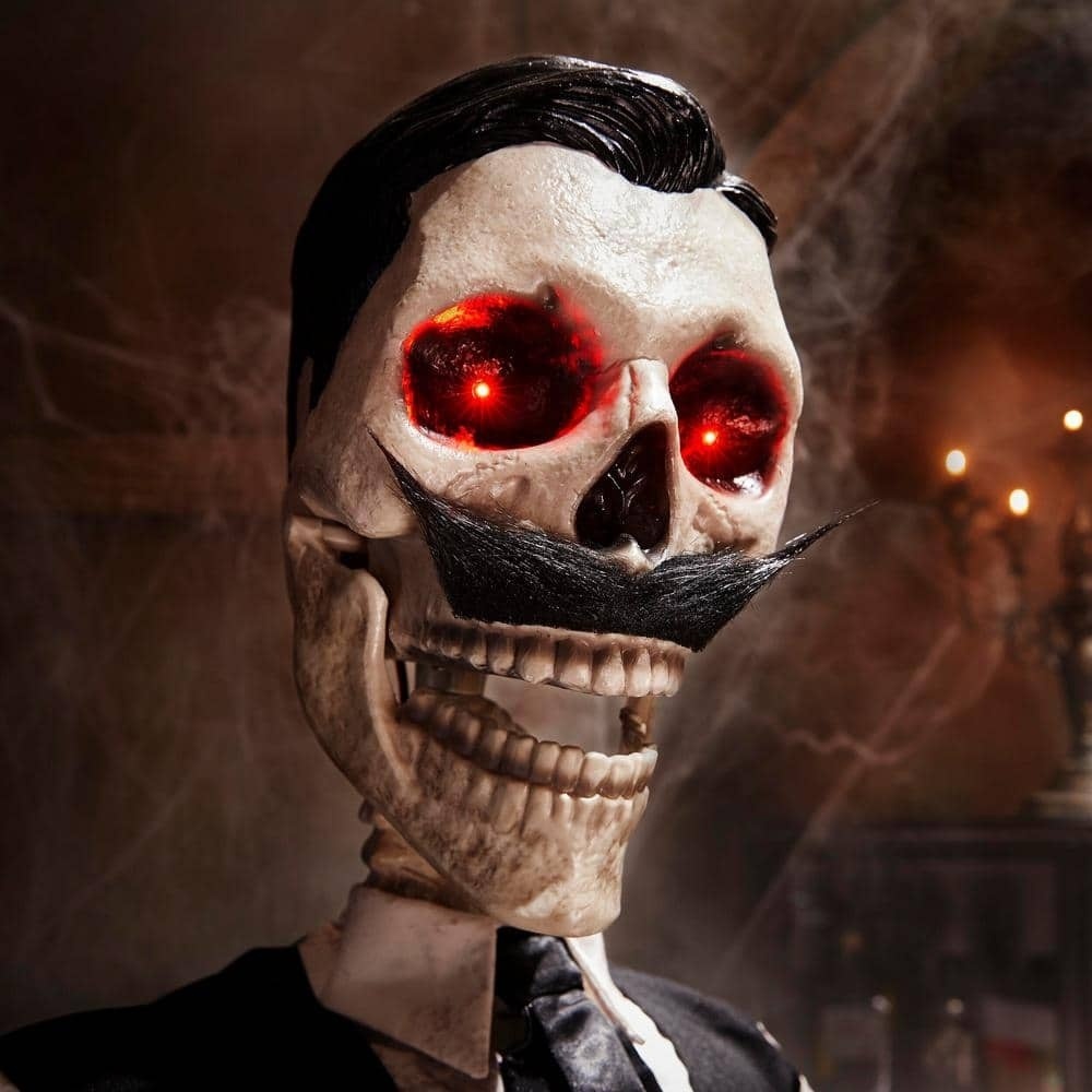 Glowing red LED eyes and sensor-activated motions and sounds create a creepy atmosphere