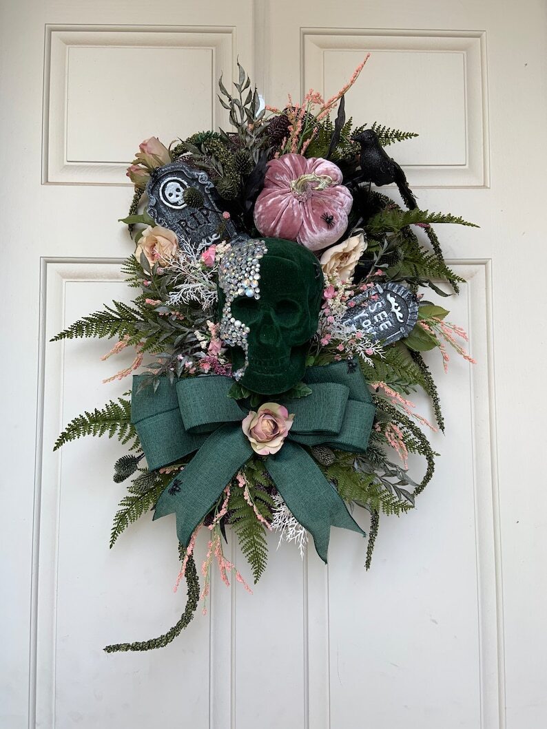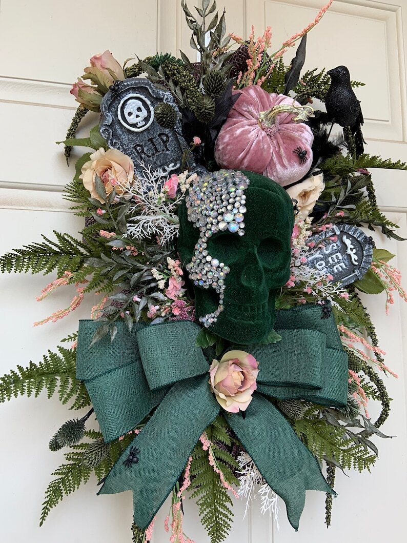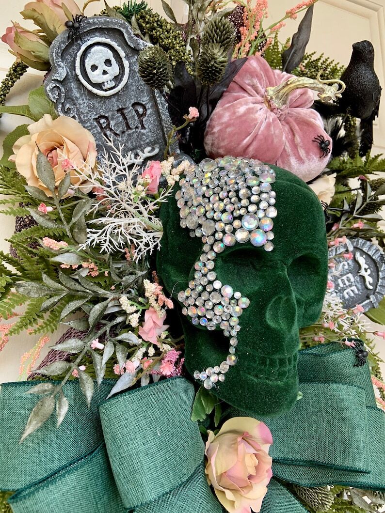 This beautiful Graveyard scene with the school in the center as if she’s risen from the dead. Diamonds on her face makes for an elegant piece.