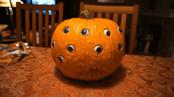 🎃Its eyes are watching you! ! !Scary Halloween pumpkin, its eyeballs keep turning.Creepy eyeball art, they will add a horror atmosphere to your Halloween, your family and children will love it.
