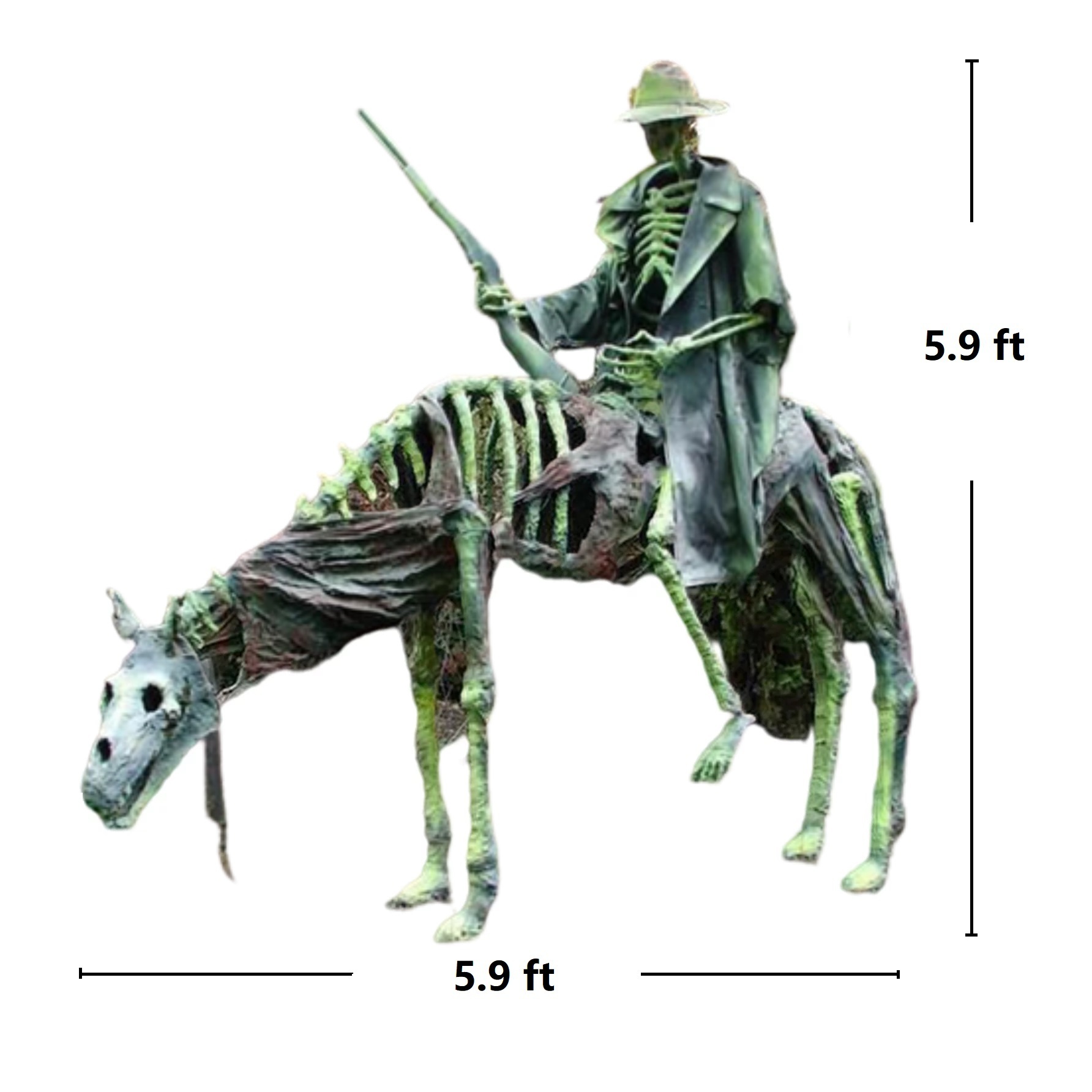 These creepy Halloween decorationshave a creepy skeleton holding ashotgun.Forget about ghosts andwitches this year and add this creepy cowboy to your Halloween series.Hewas riding on his skeleton horse,even more terrifying, as if death had descended.