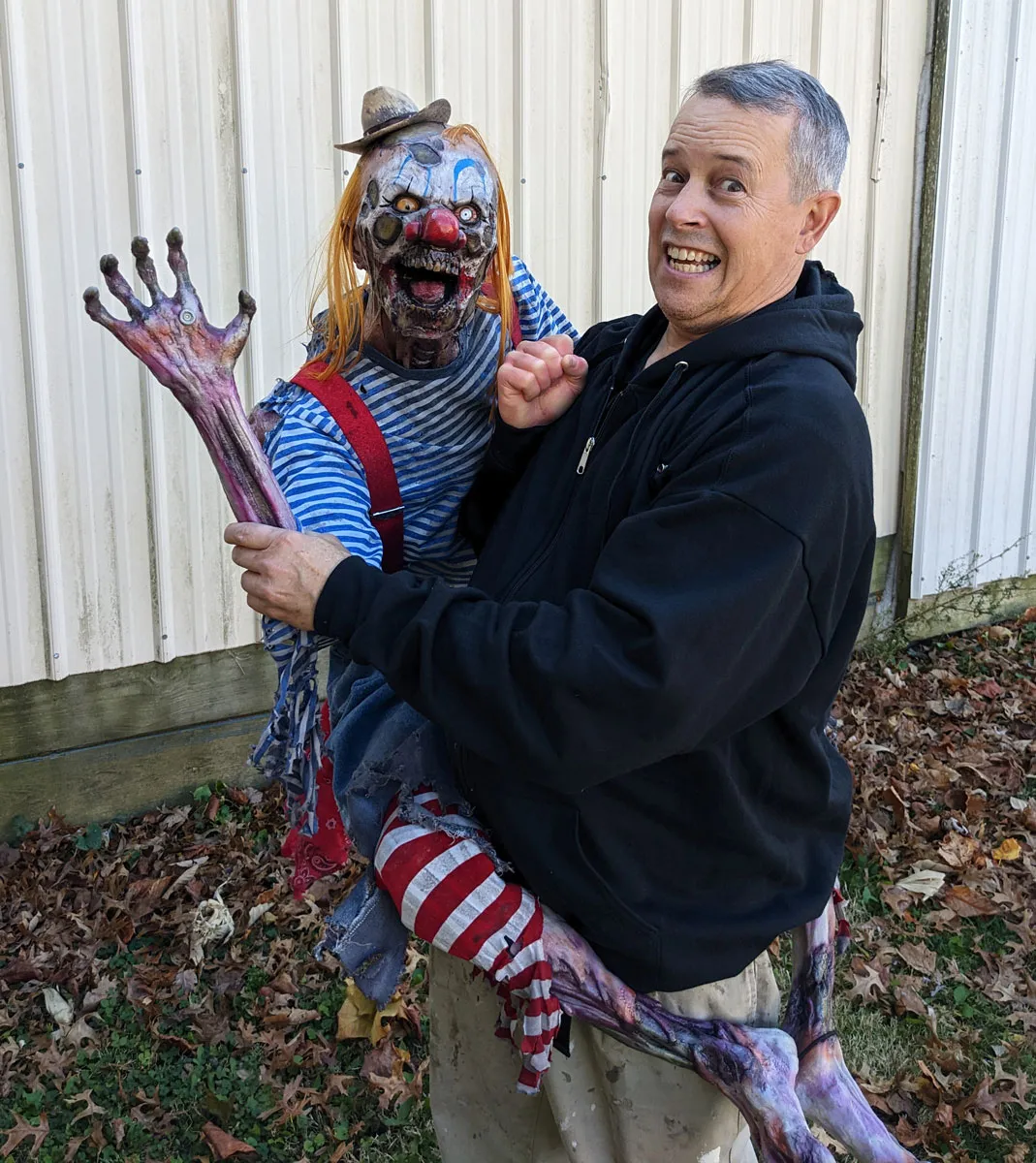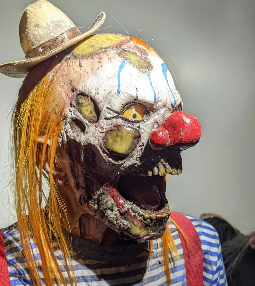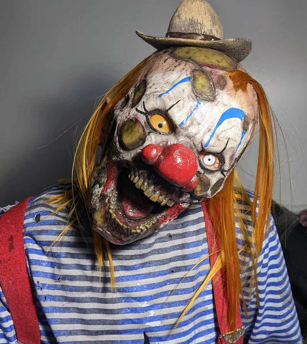 Gnarly Charlie Premium version with X-ROTT is Hulu's most realistically detailed and gory of all our zombie clown puppets. A great haunt attraction addition that can be used in the attraction, to entertain queue lines and to promote your attraction at other events and in parades.