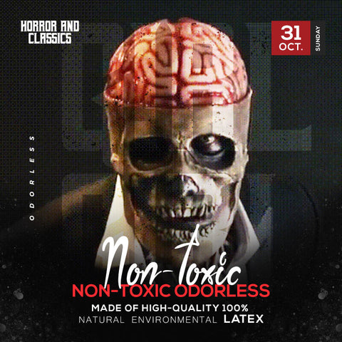 The scary mask is made of high-quality 100% natural environmental latex. Deodorization treatment was done in the production process. Non-toxic, non-dissemination of odor, waterproof insulation, and a very natural realistic, and easy to clean.