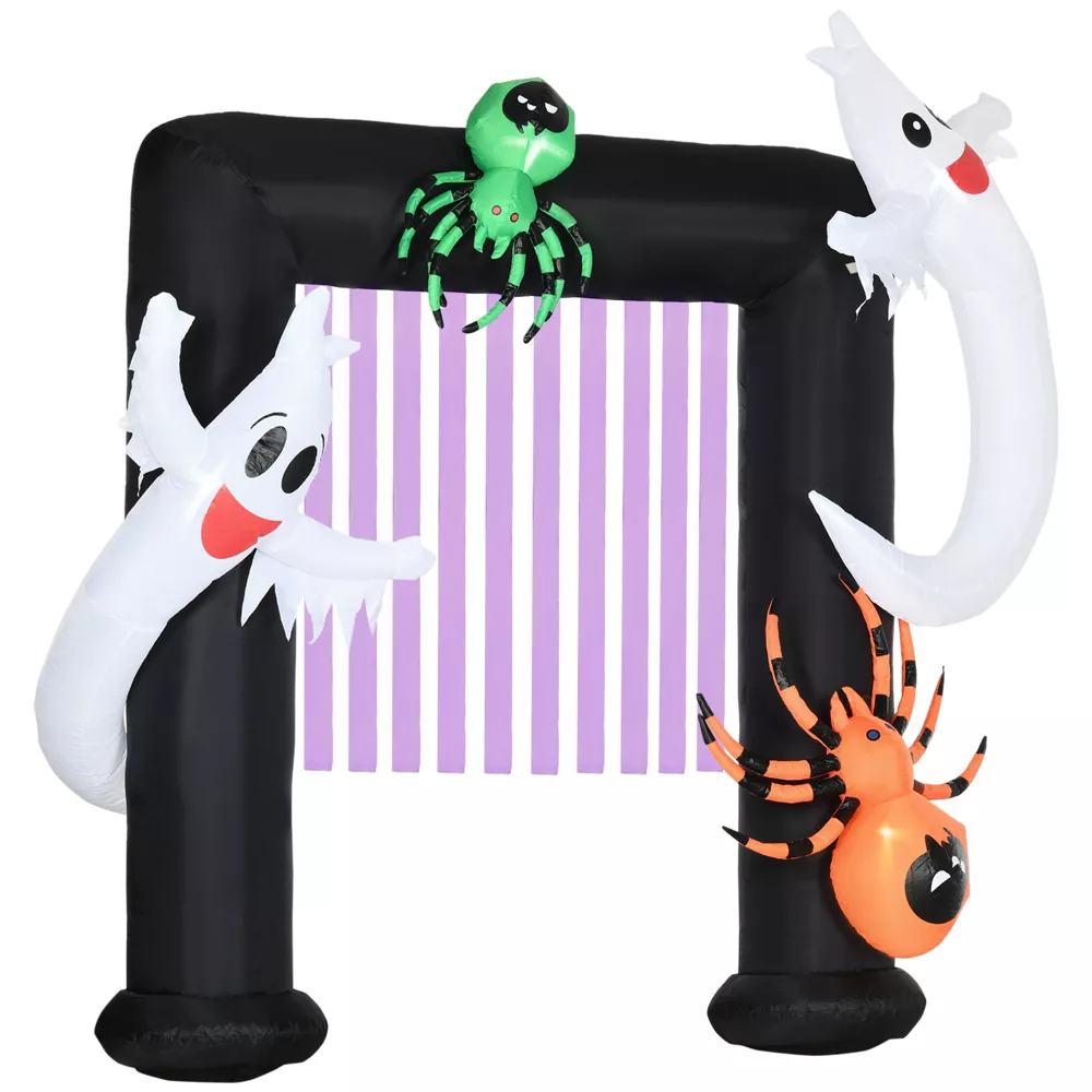 Show Your Festiveness: You and your neighbors are going to freak at the spook factor of this Halloween inflatable smiling ghosts and spiders archway. This is going to bring your outdoor holiday madness to new heights and provide days of enjoyment to those hooligan onlookers.
