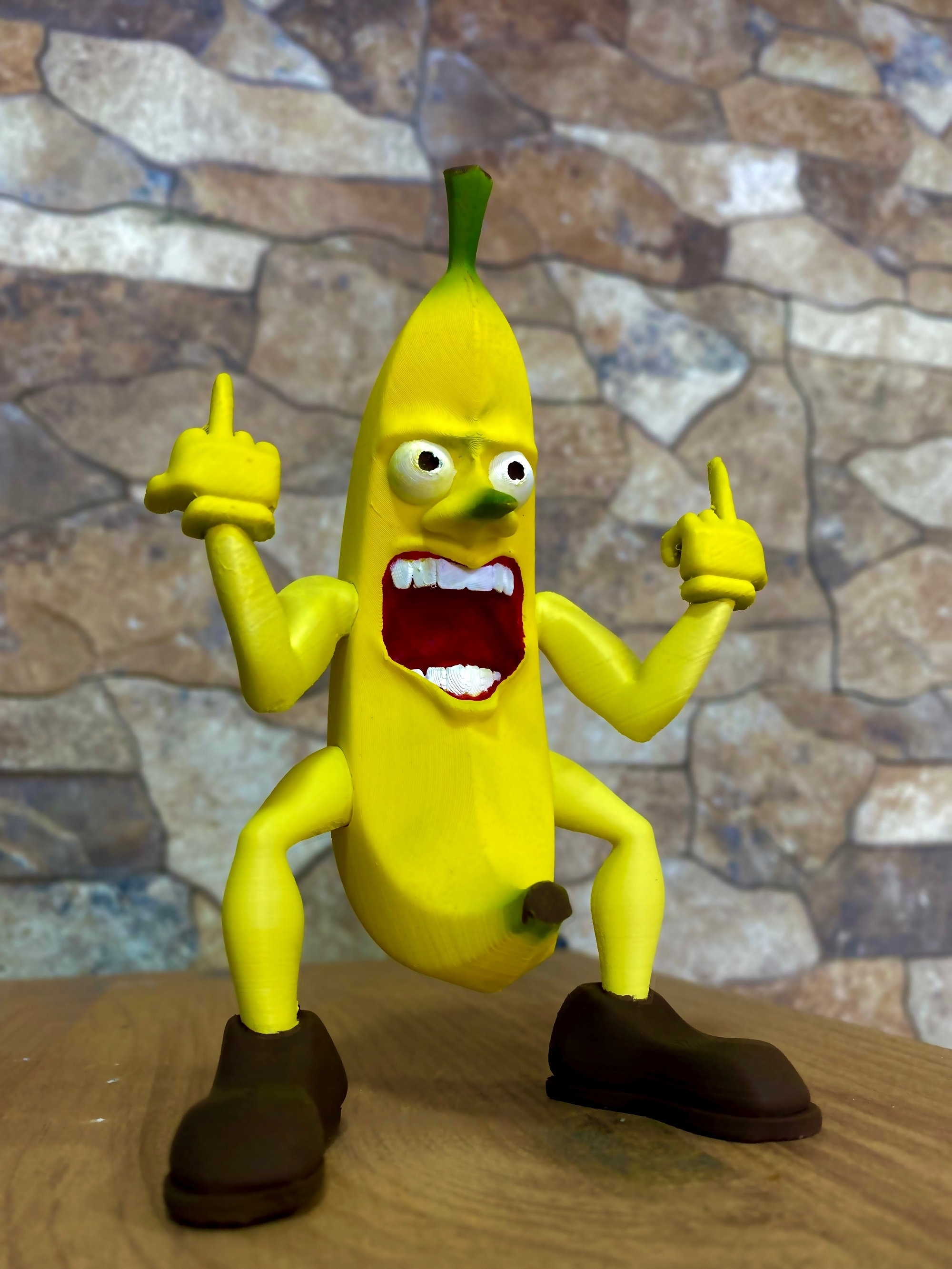 With its hand confidently raised in a defiant gesture, the 'Banana-You' Figurine turns heads and sparks conversations, making it a standout addition to your desk, shelf, or any spot that needs a playful vibe.