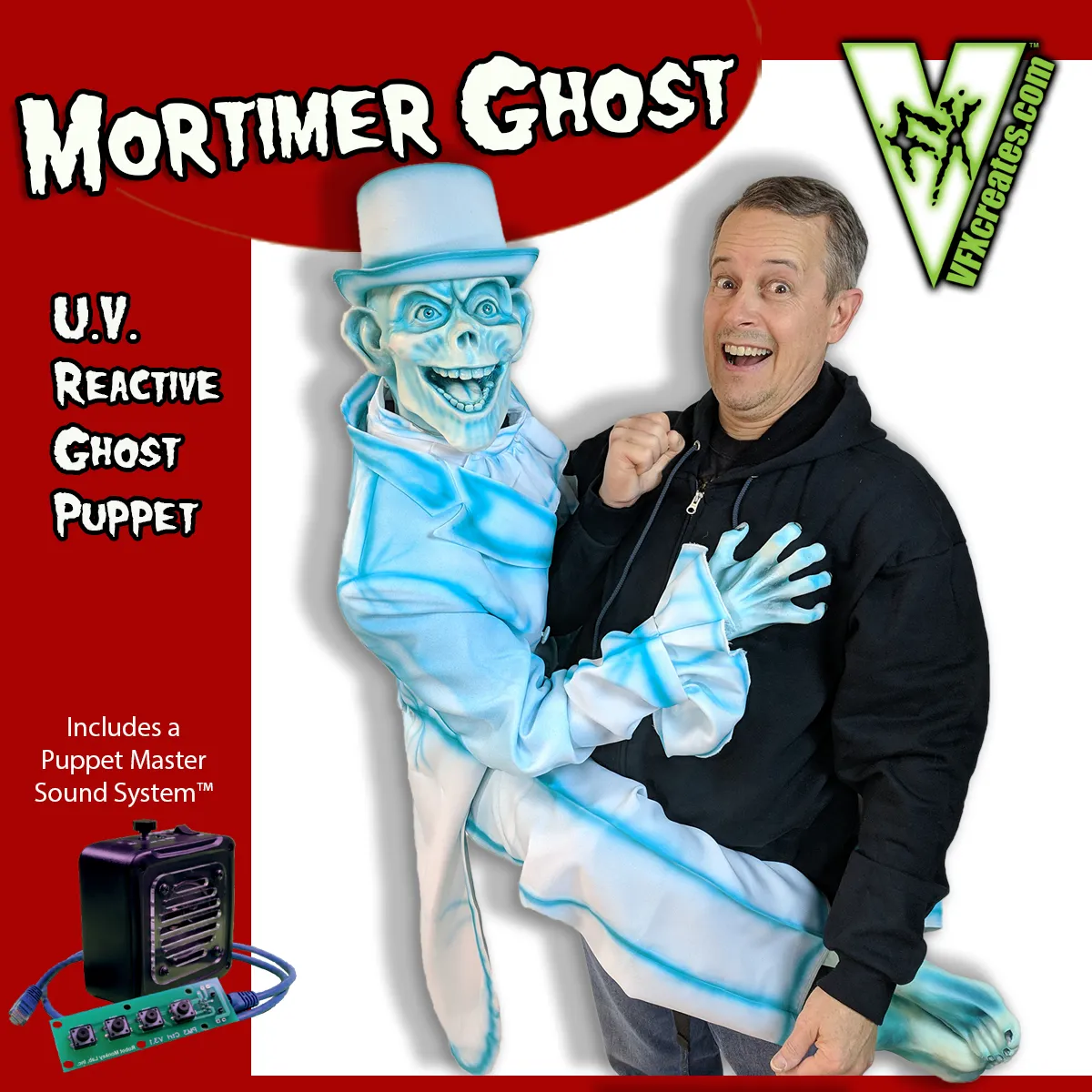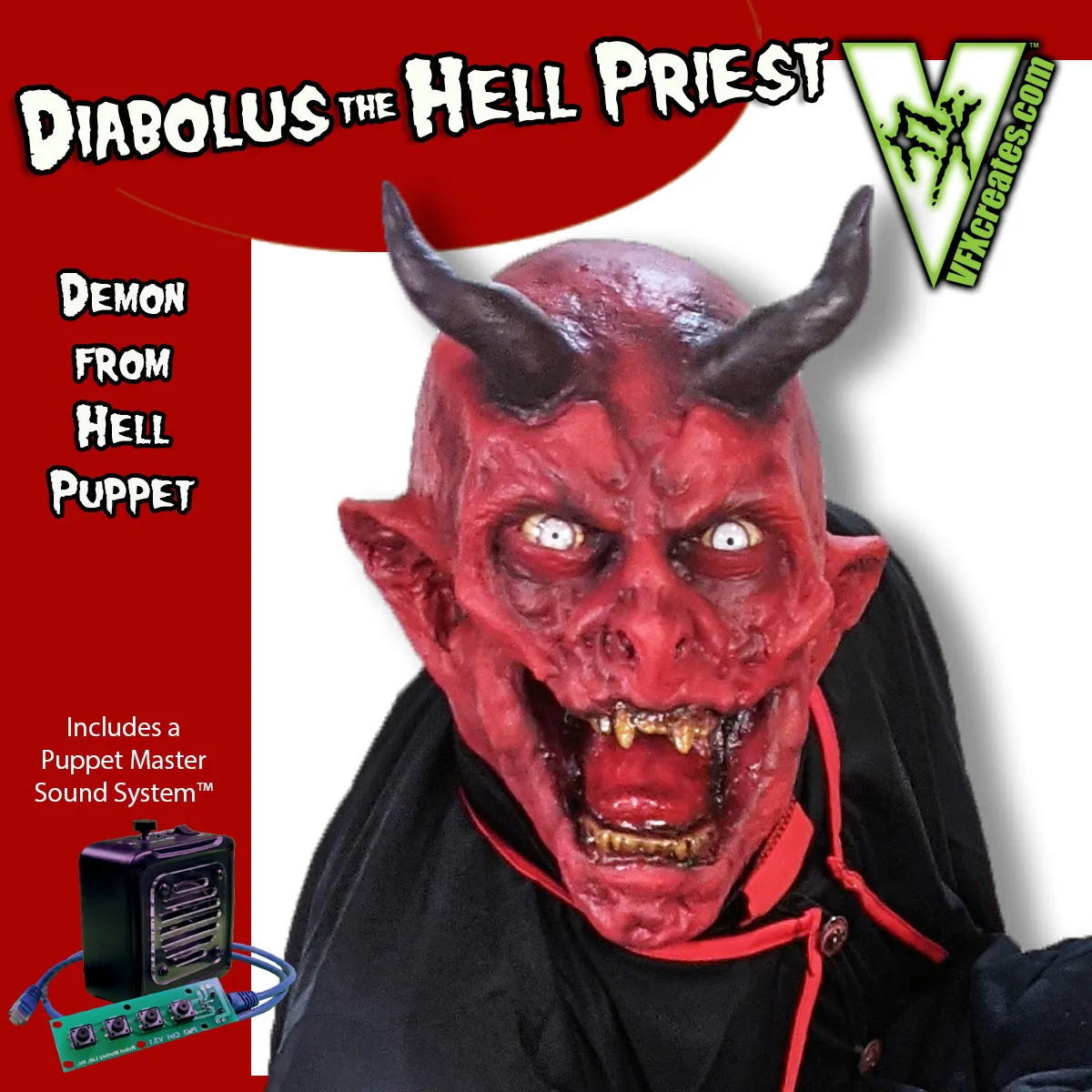 This puppet includes a custom Puppet Master Sound System™ loaded with creepy, devilish audio…he’s ready to go out of the box! FREE shipping is included in the continental US!