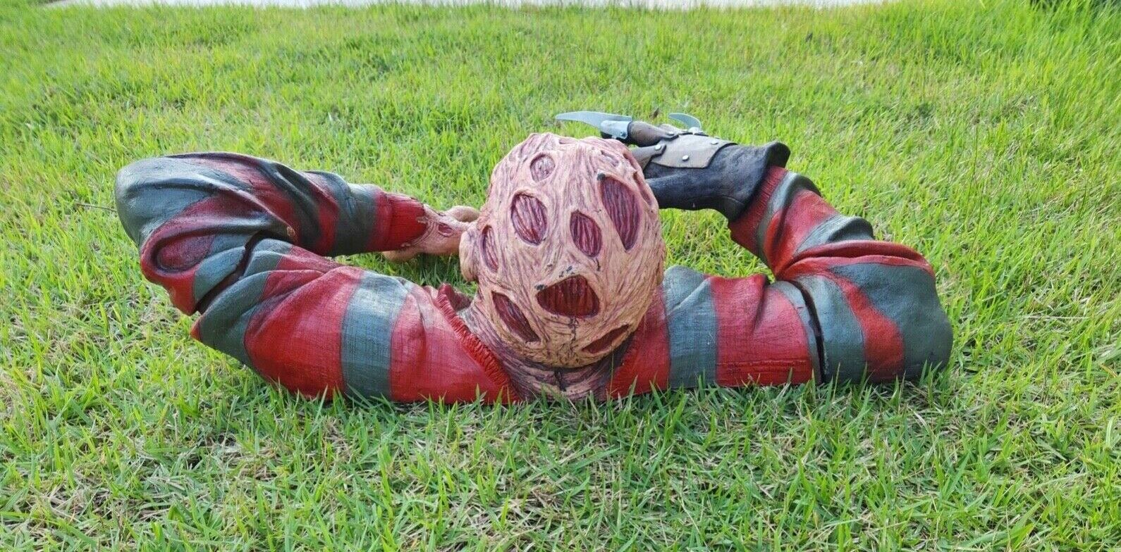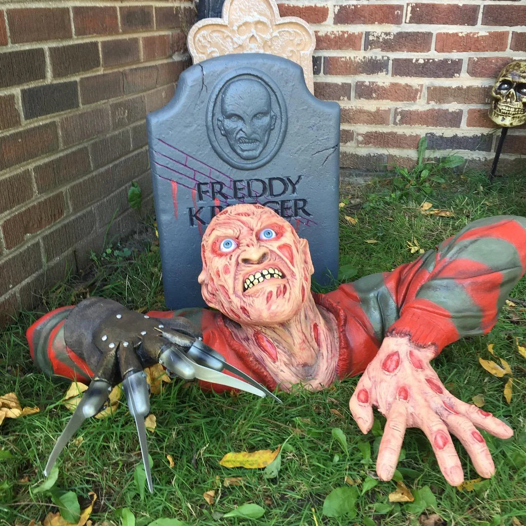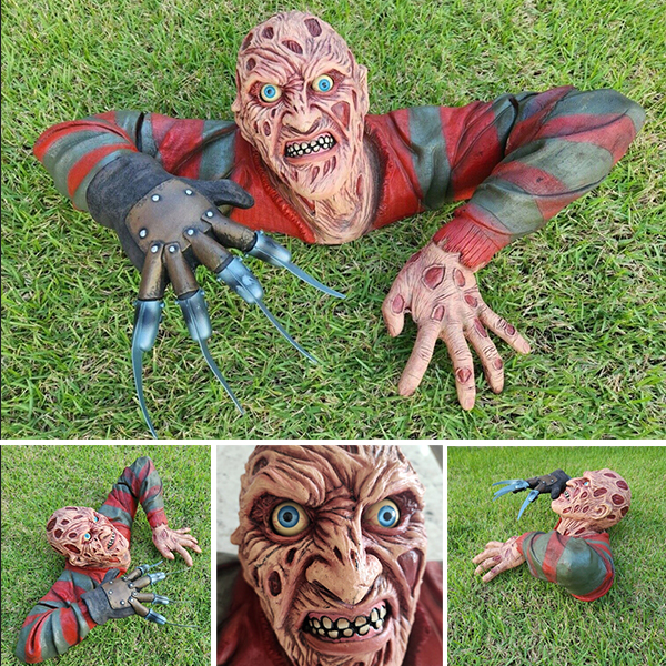If you're looking to scare a few unsuspecting neighborhood kids who've been giving you trouble, this frightful Nightmare on Elm Street Freddy Krueger Grave Walker Statue will make the kids more obedient!😎😎