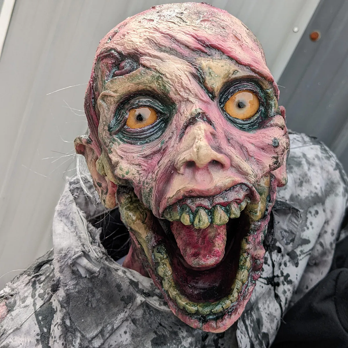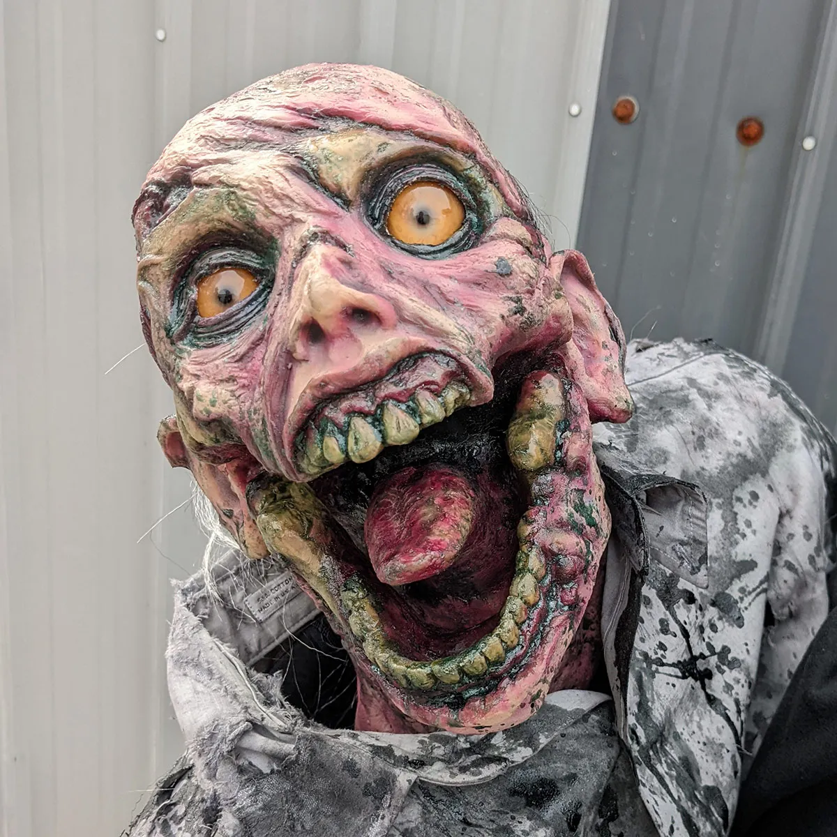 Sammy Slack-Jaw Premium with X-ROTT is one of VFX's most rotted zombie puppets to date! Why, he's so rotted his jaw keeps hanging off, exposing his wiggling tongue as he tries to bite you. Sammy is available as a full-body zombie or a half-zombie with dangling guts.