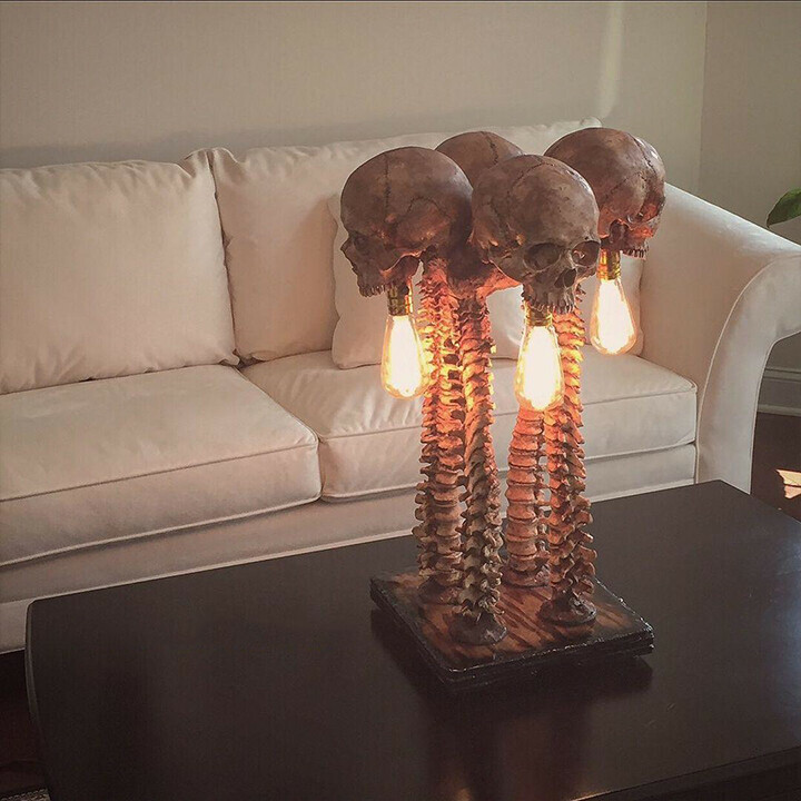 💀The large skull lamp is made up of four bones connected together, and their lower jaws are missing. This treacherous lamp is cast from high-quality resin before being carefully hand-painted.