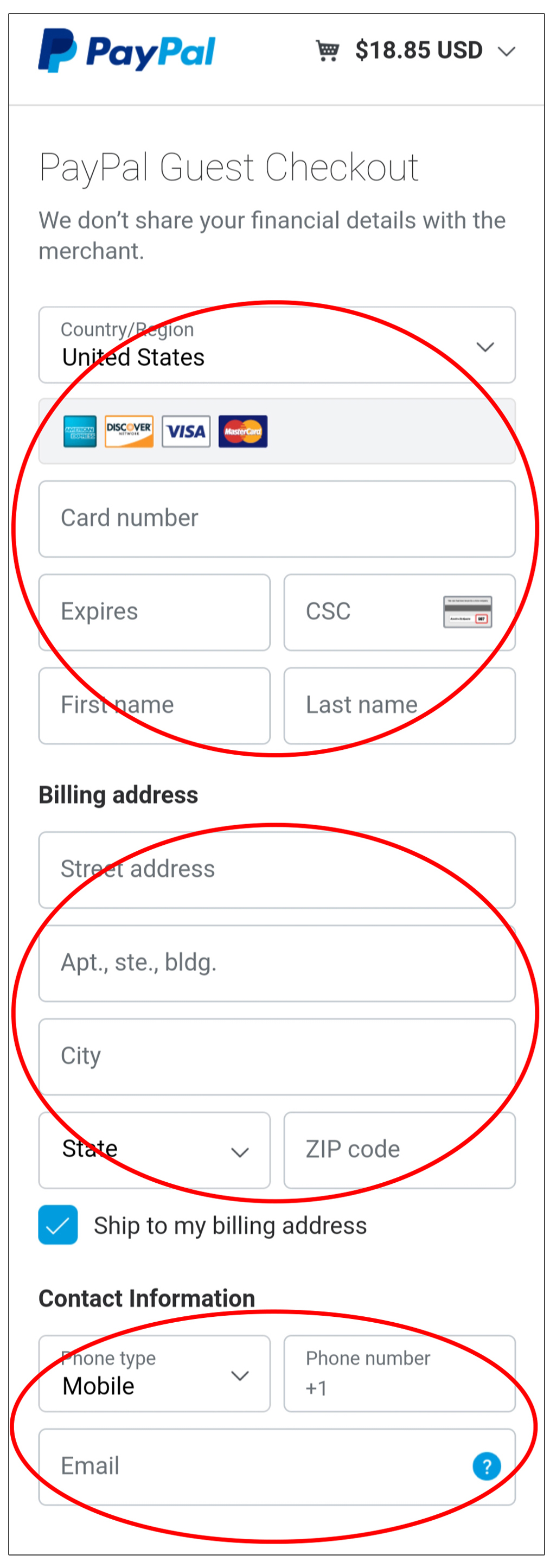 Enter your Payment details, your Billing Address, and your Contact Information.