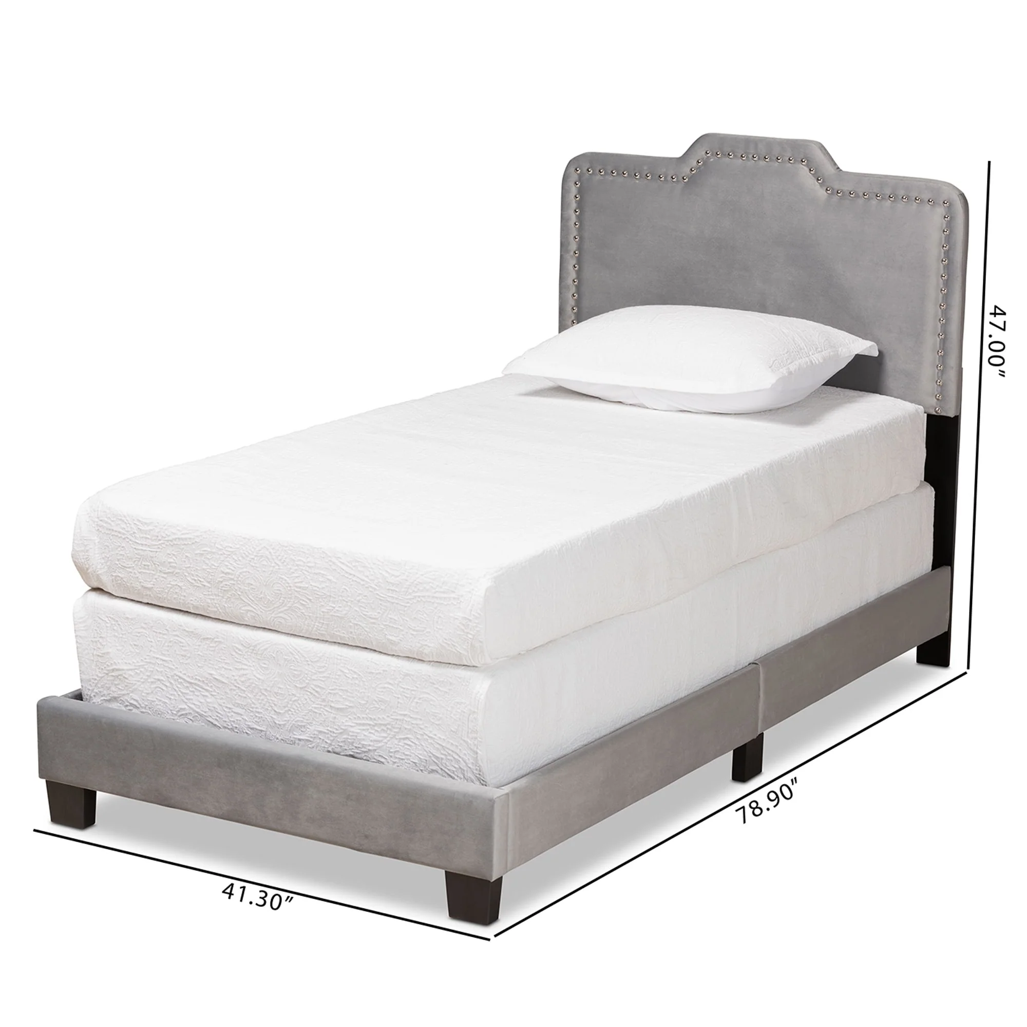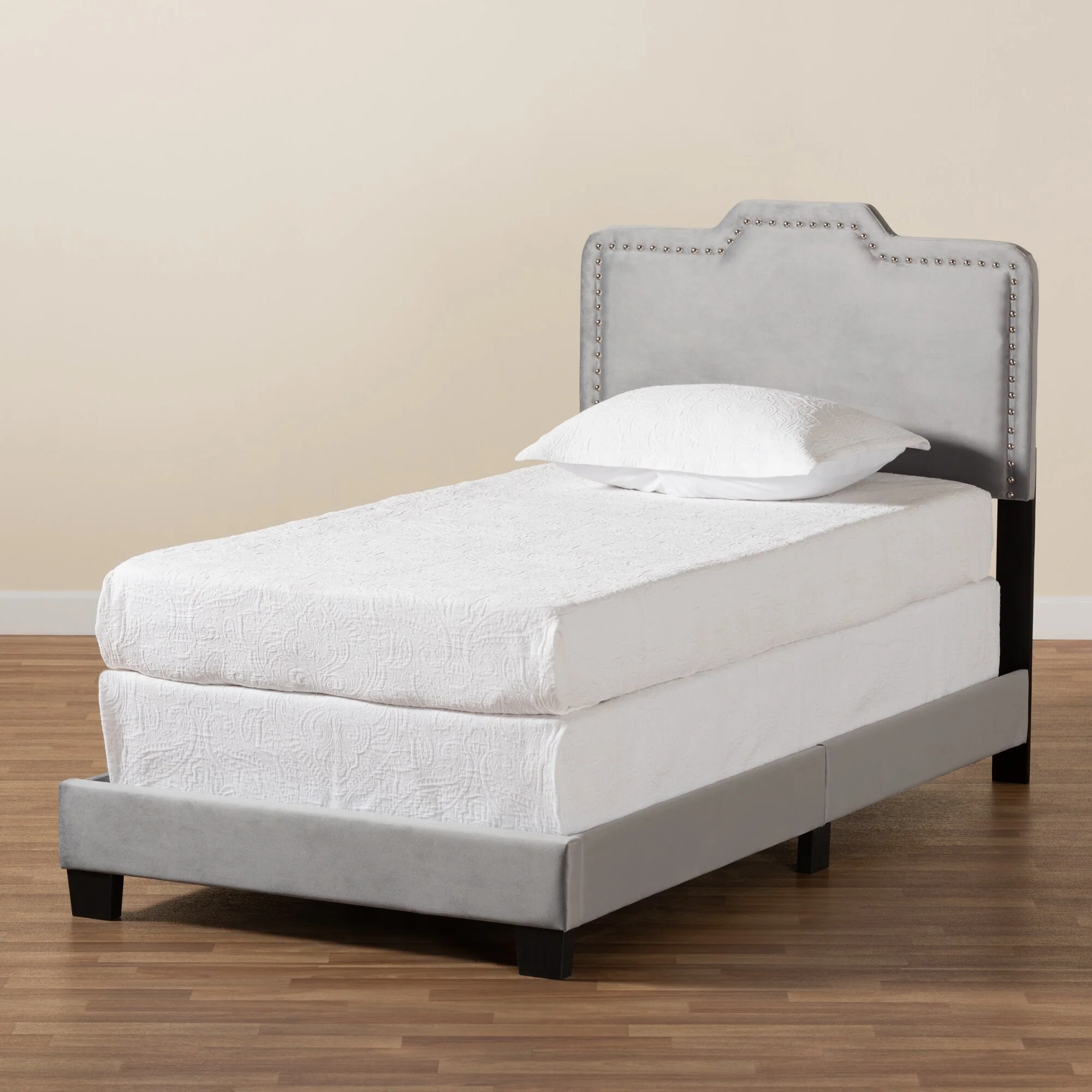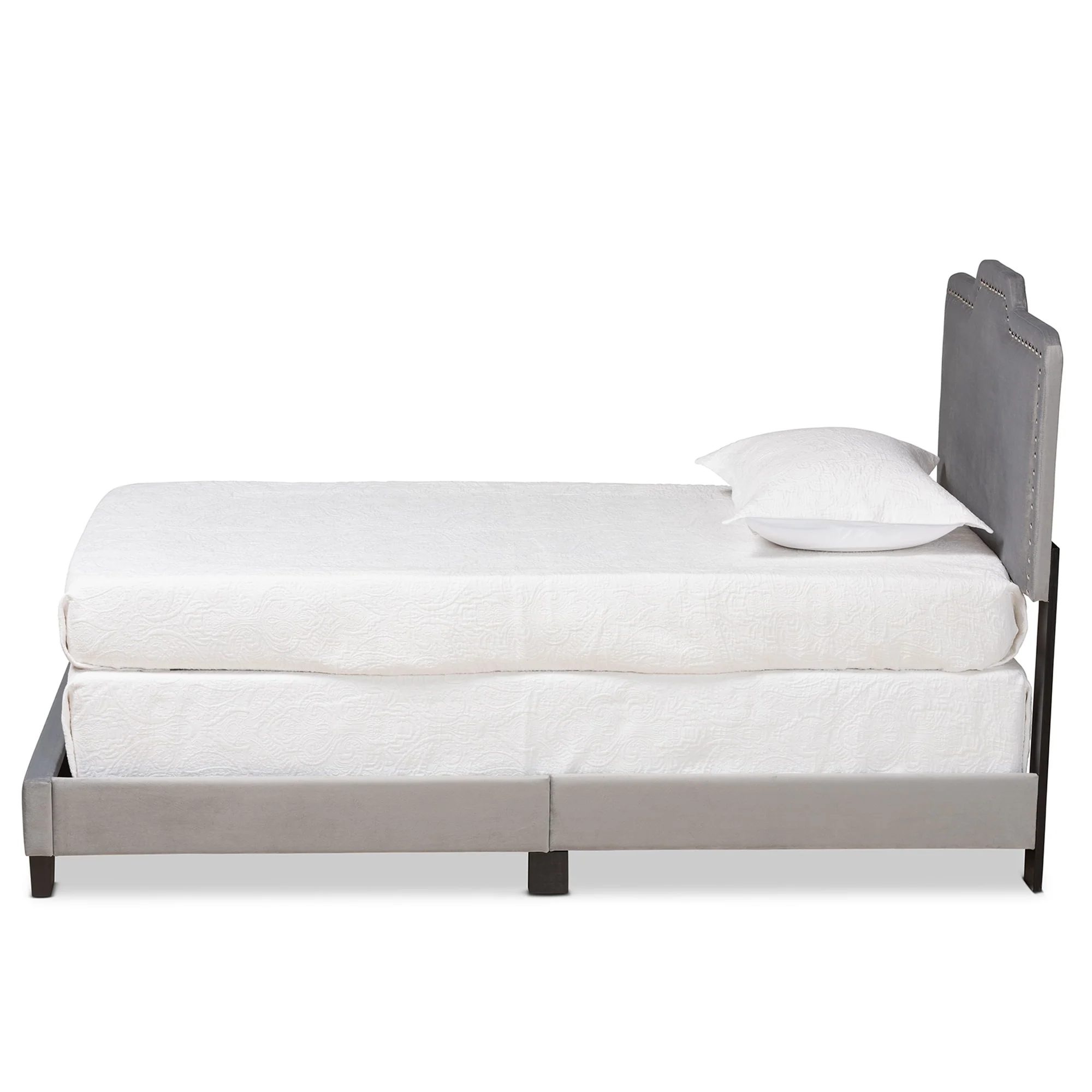 Steeped in glamorous design, the Benjen bed stands out with marvelous comfort and style. Made in Malaysia, this wood bed is padded with layers of soft foam and upholstered in smooth velvet fabric. Its broad headboard provides excellent back support, while silver finished metal nailheads add contemporary flair and accentuate the regal silhouette. Requiring assembly, the Benjen needs a box spring to function properly. Forming an extravagant display of comfort, the Benjen bed is a terrific addition to the modern bedroom...