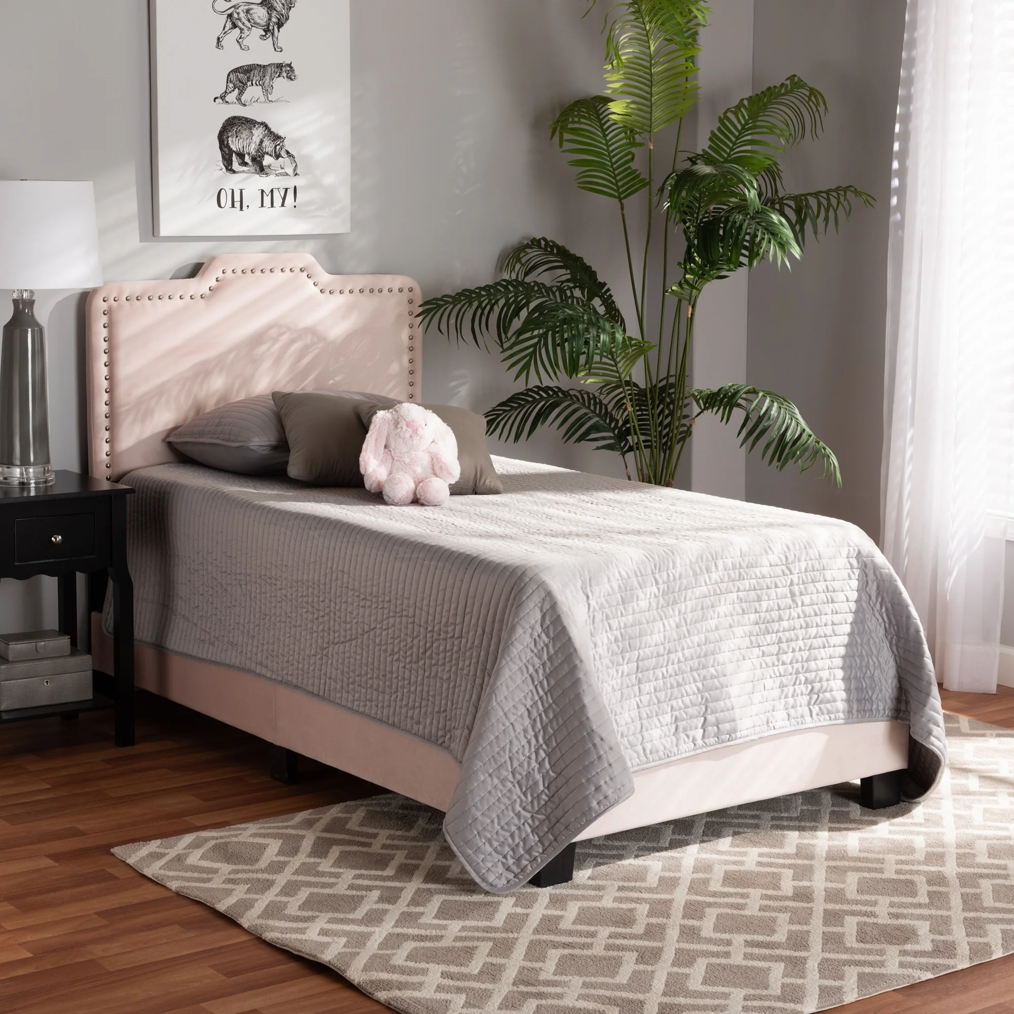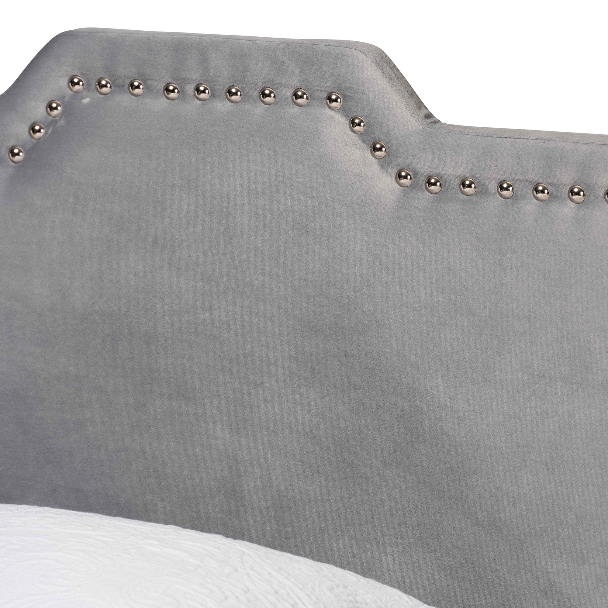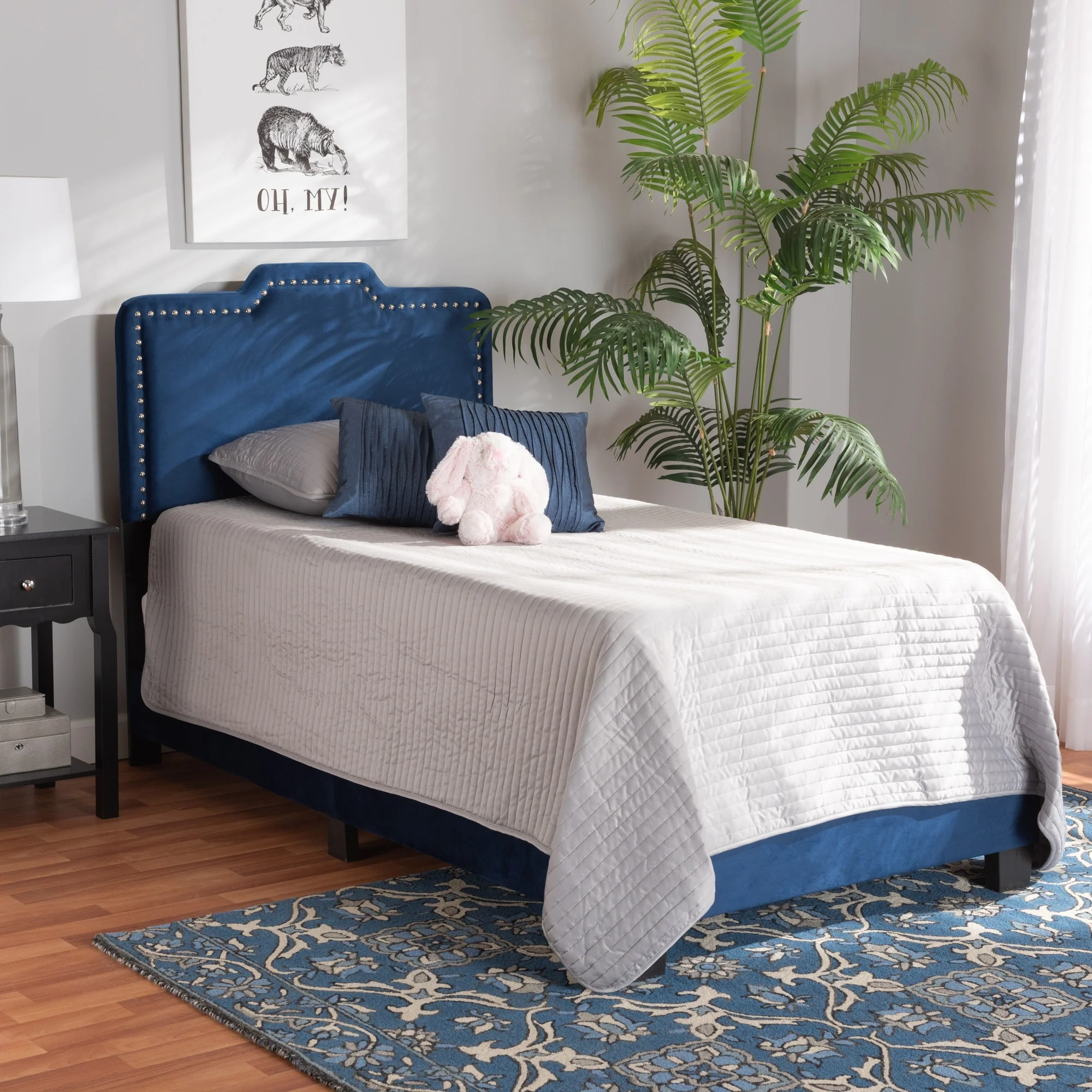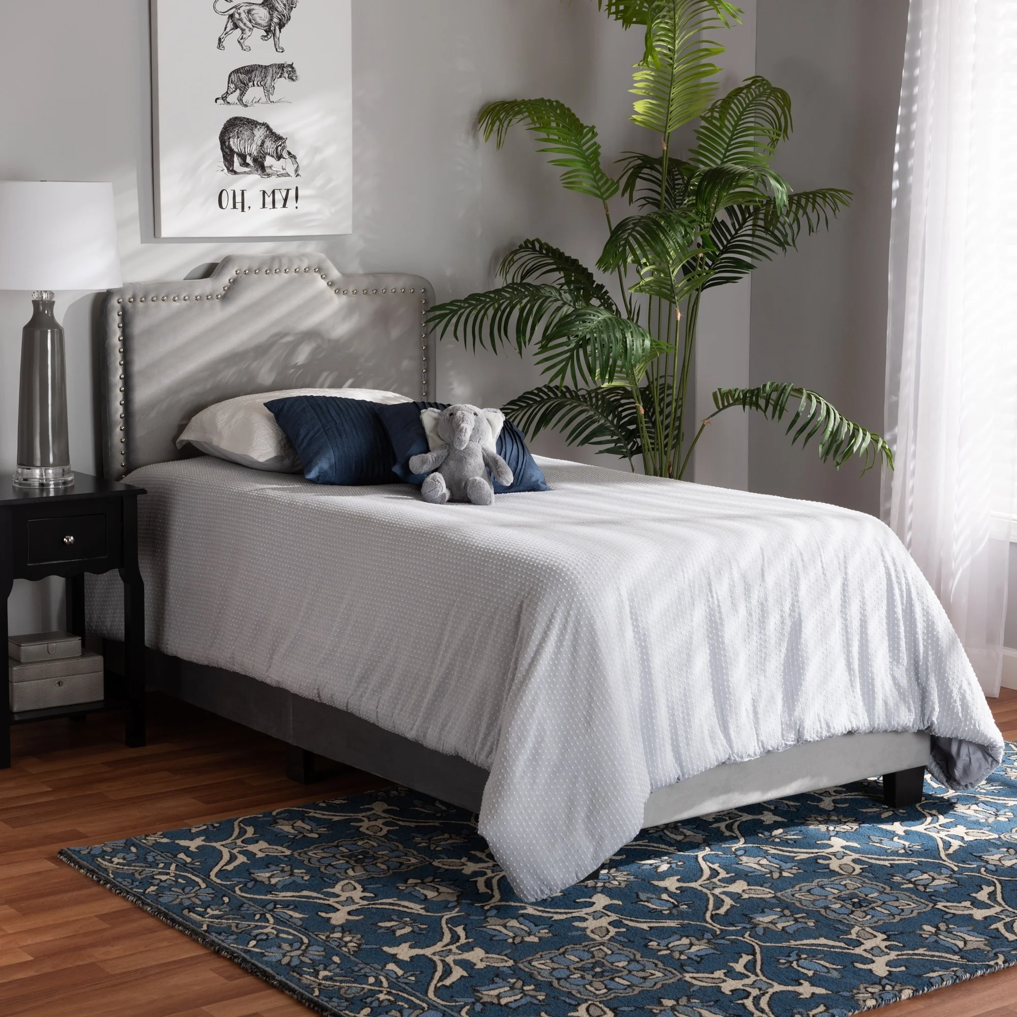 Steeped in glamorous design, the Benjen bed stands out with marvelous comfort and style. Made in Malaysia, this wood bed is padded with layers of soft foam and upholstered in smooth velvet fabric. Its broad headboard provides excellent back support, while silver finished metal nailheads add contemporary flair and accentuate the regal silhouette. Requiring assembly, the Benjen needs a box spring to function properly. Forming an extravagant display of comfort, the Benjen bed is a terrific addition to the modern bedroom...