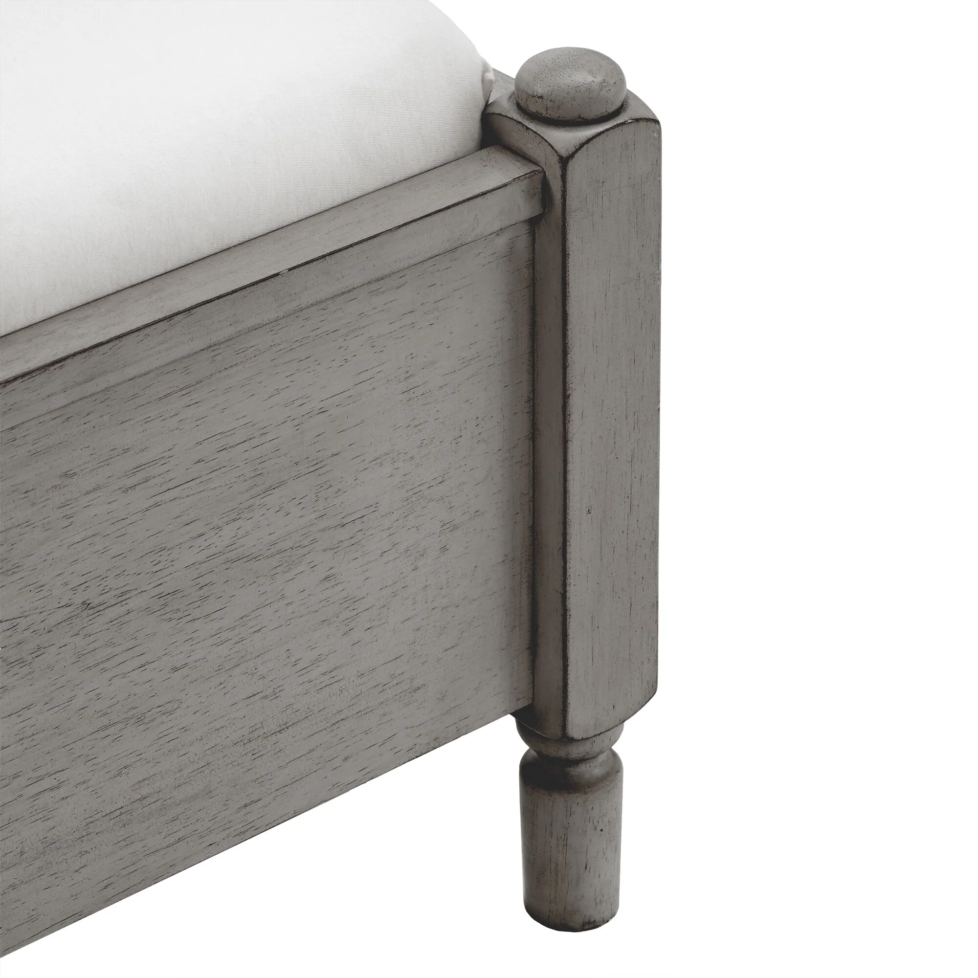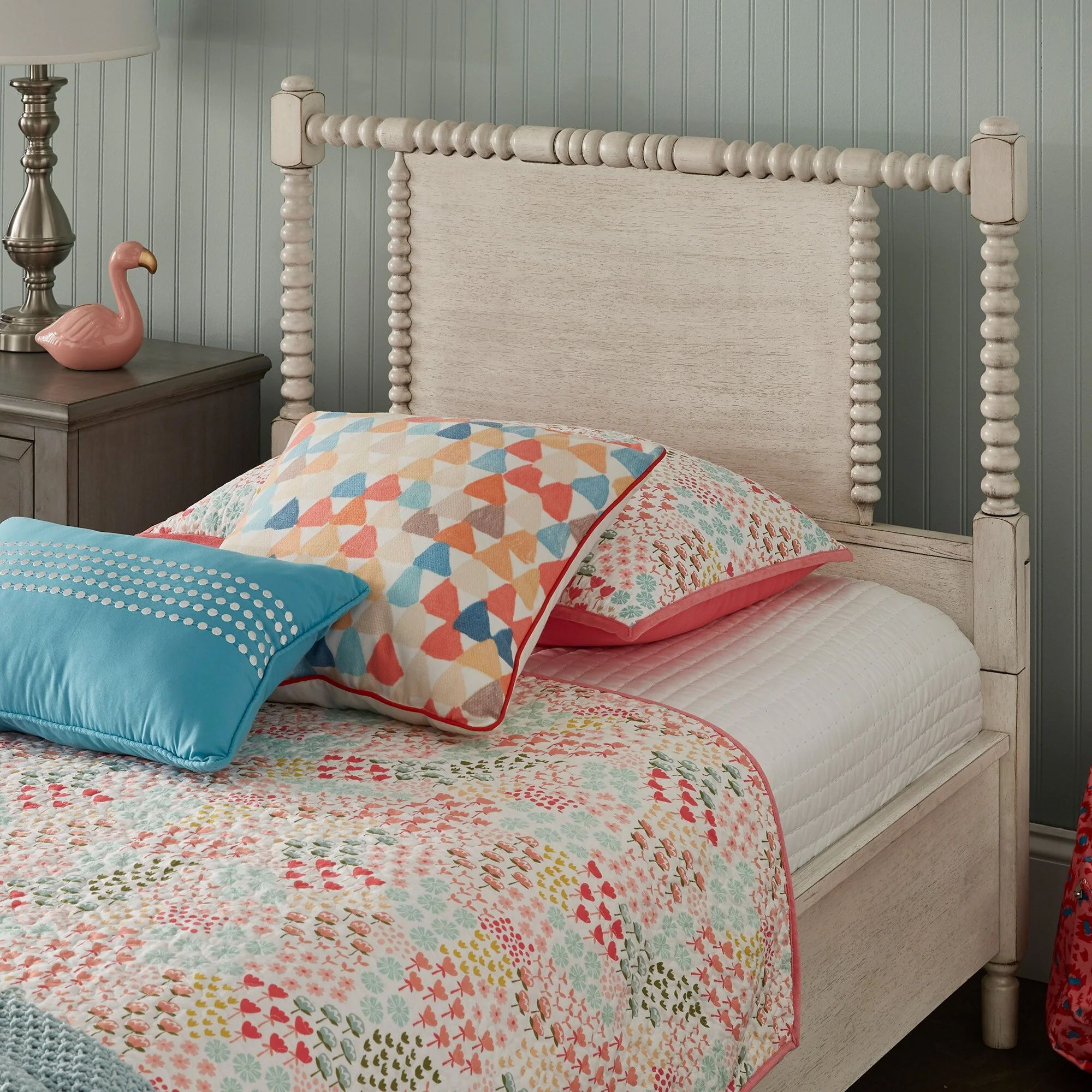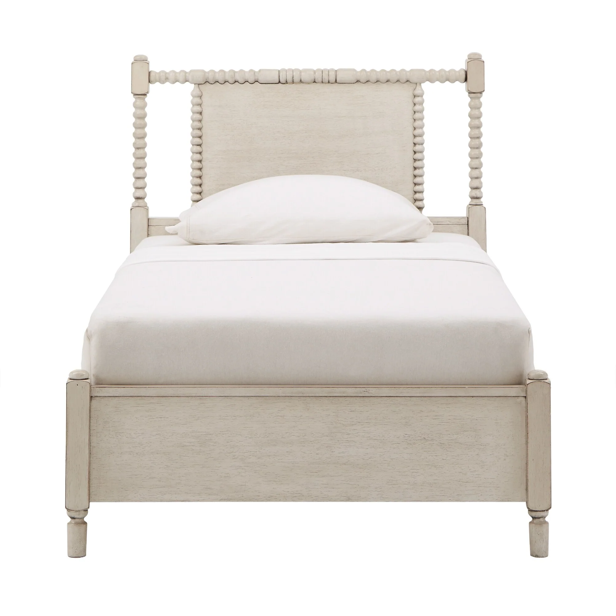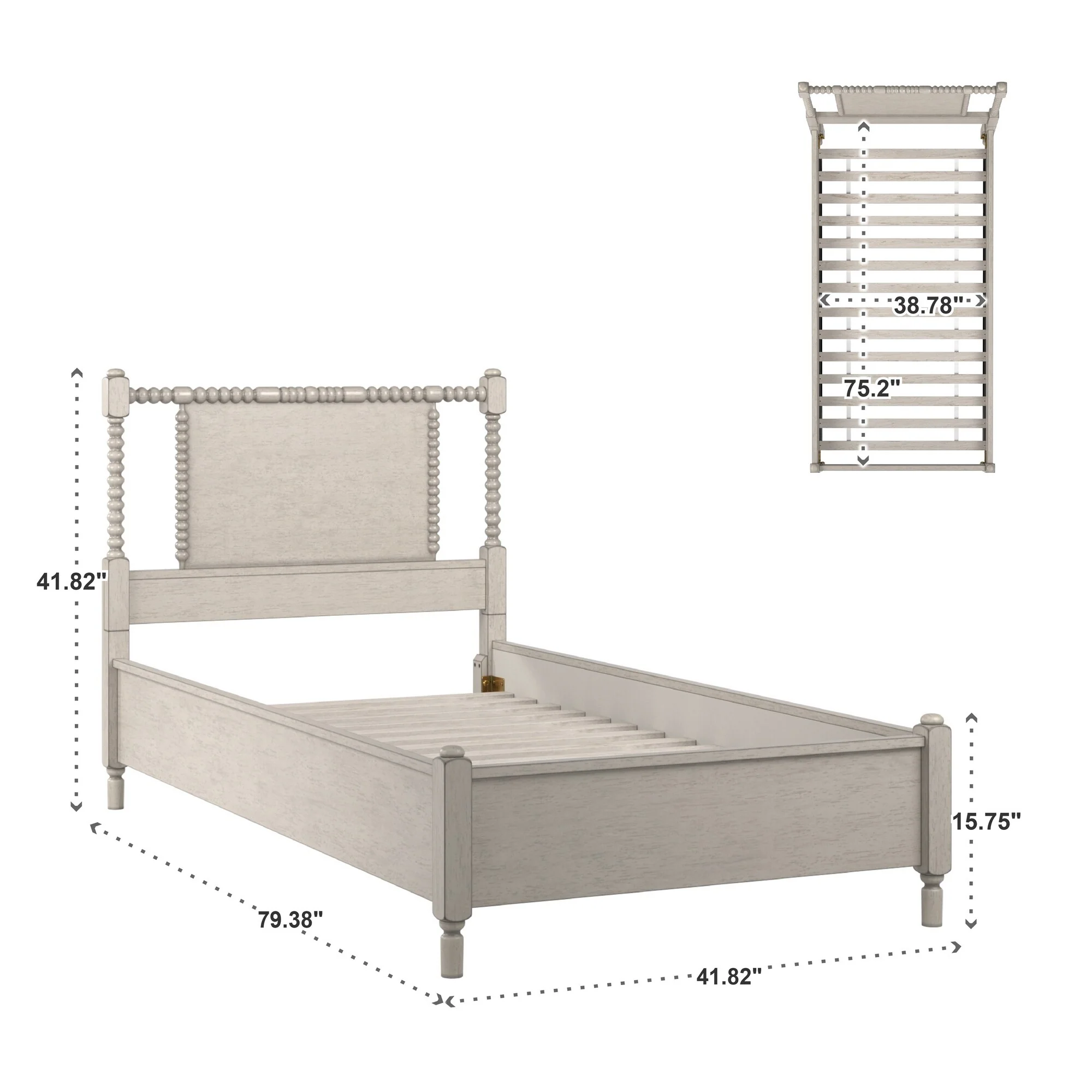Escape to serenity every night with the Demetria Antique Finish Beaded Wood Platform Bed. Uniting contemporary and classic elements, this charming bed is constructed with wood for lasting reliability and boasts a neutral antique wood grain finish for timeless character. The rectangular headboard features lovely, beaded styling and turned legs, creating a look perfect for any kids’ room.