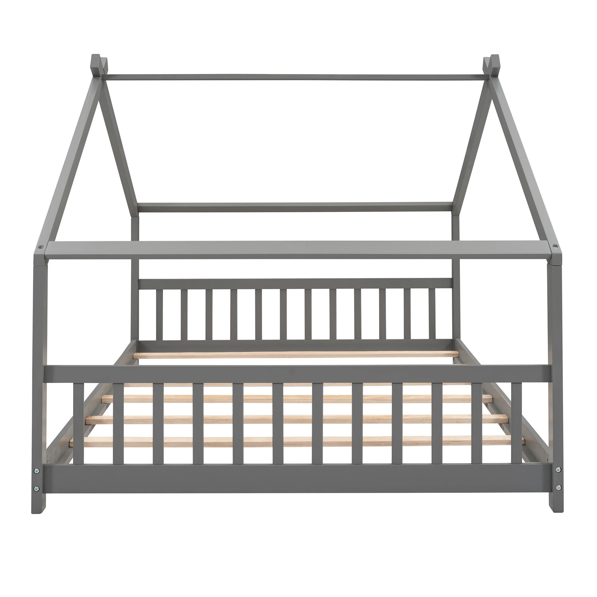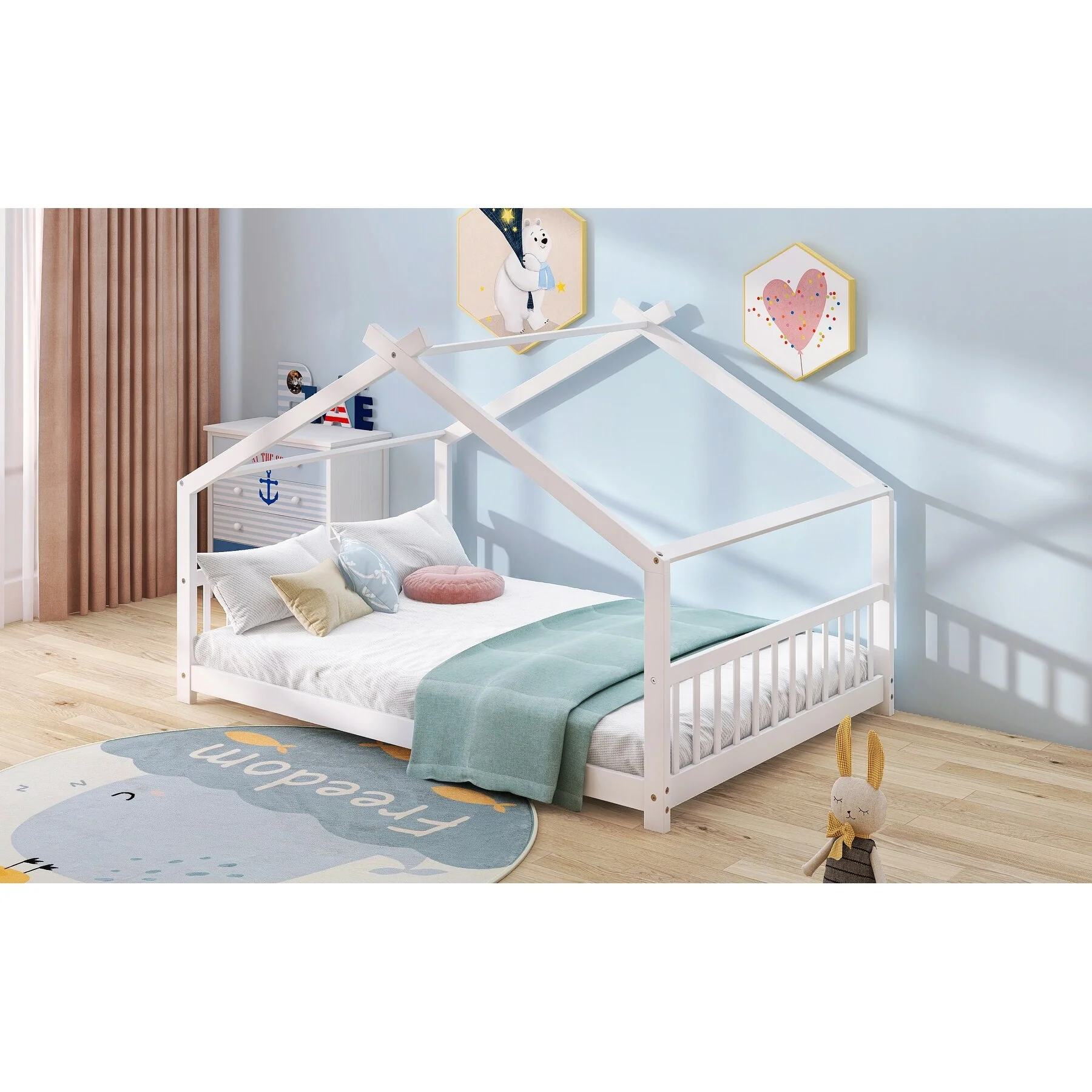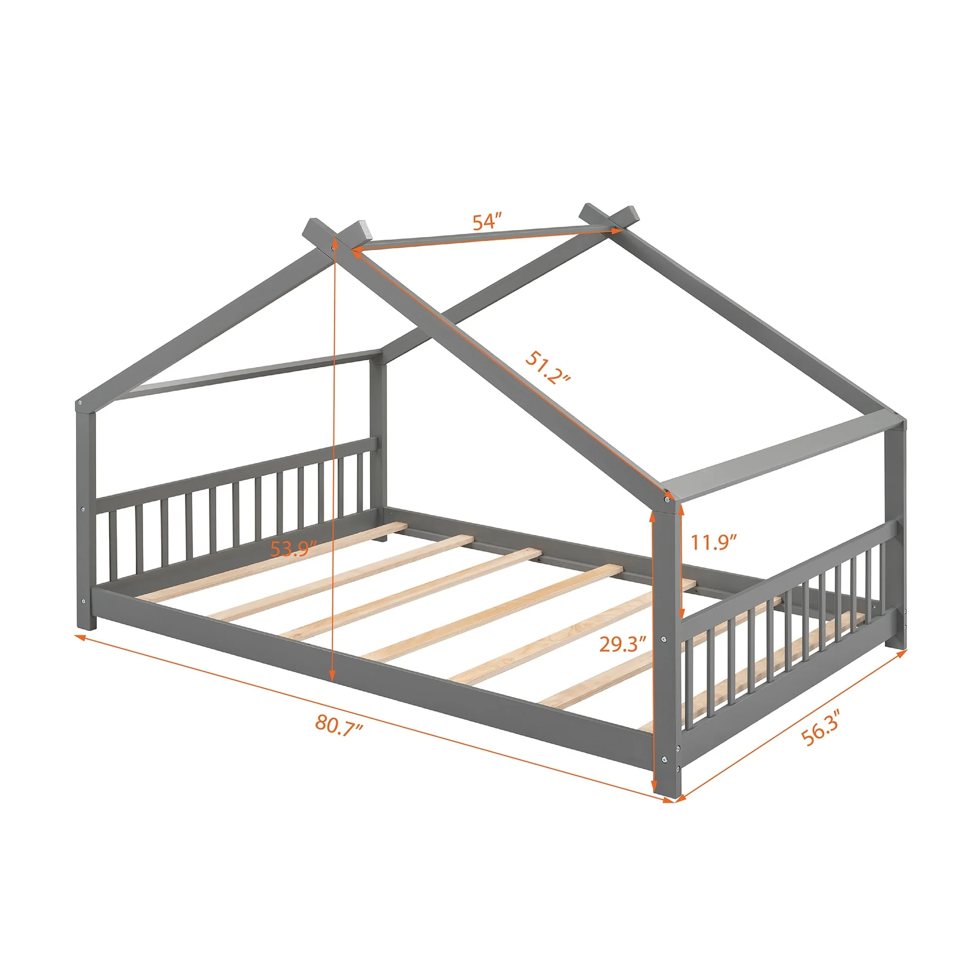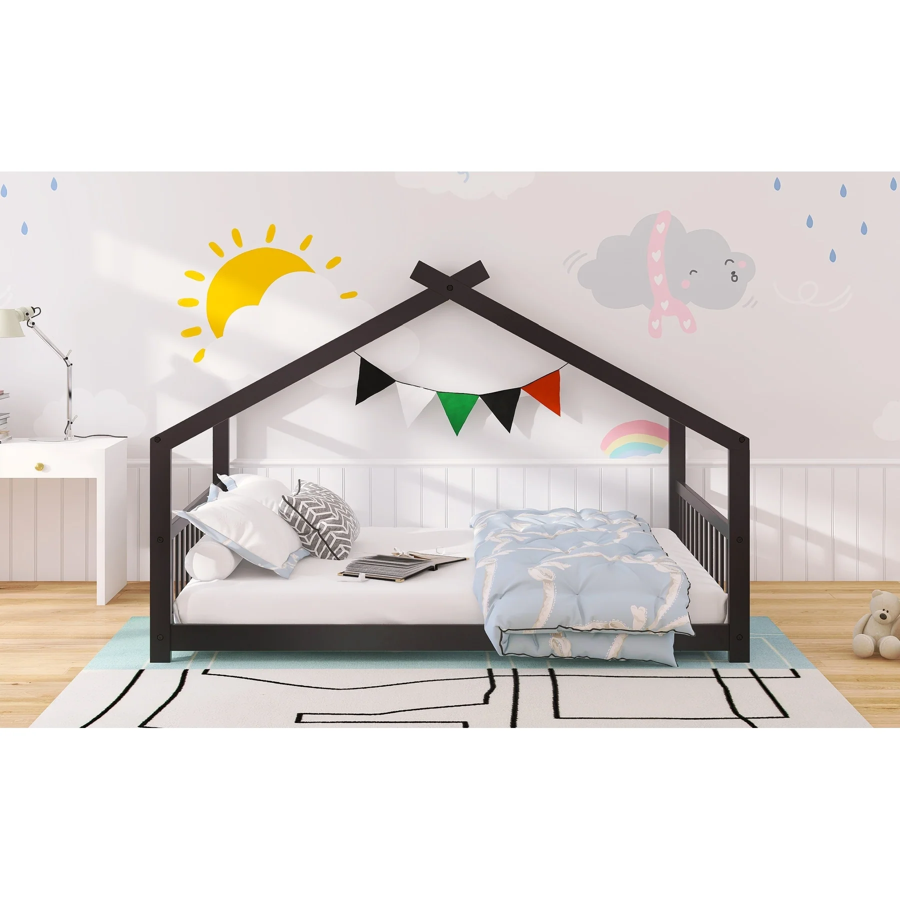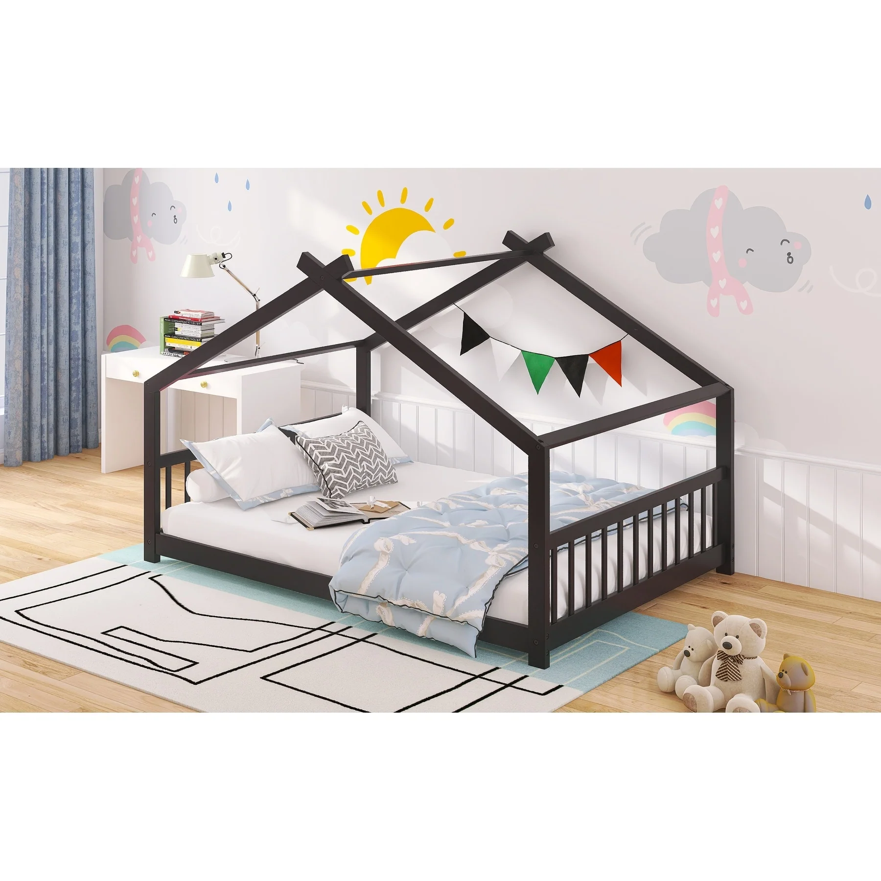This Full Size House Bed features a whimsical roof design that creates a cozy and imaginative space for your child to sleep and play. Crafted from sturdy pinewood and plywood, this house bed offers both durability and safety. The semi-enclosed structure provides a comforting environment for sleep while allowing for ample air circulation. The neutral espresso finish complements various decor styles, making it an easy addition to any room. With slats included, no box spring is required, ensuring easy assembly and setup. This house bed is perfect for inspiring your child's creativity while offering a comfortable place to rest.