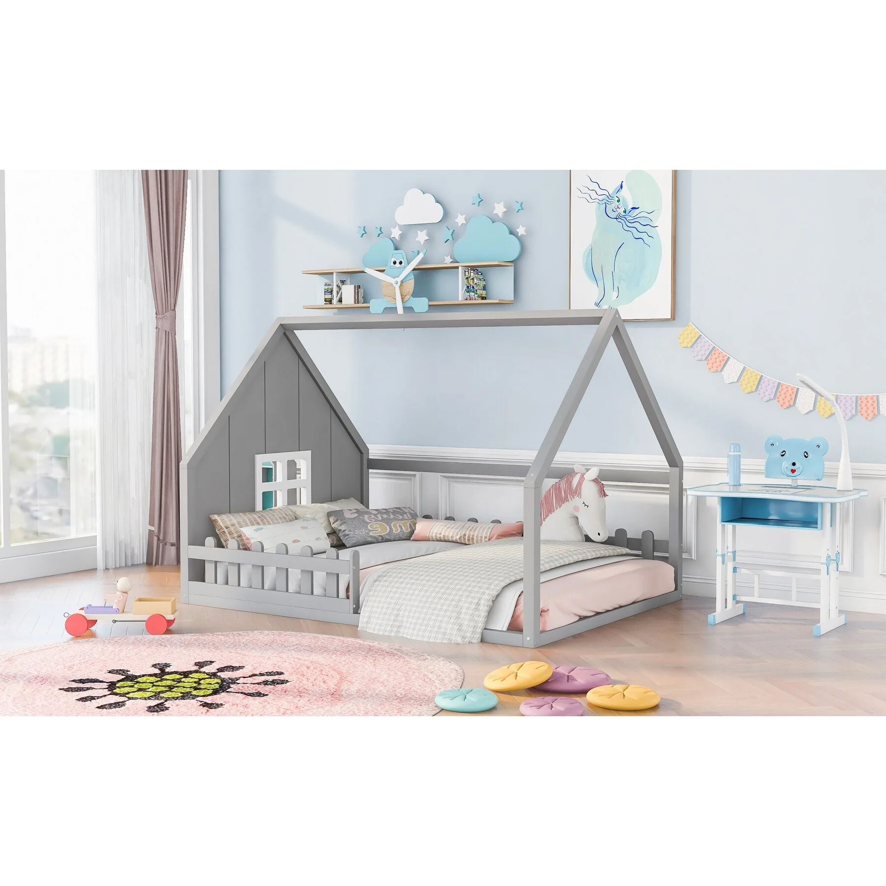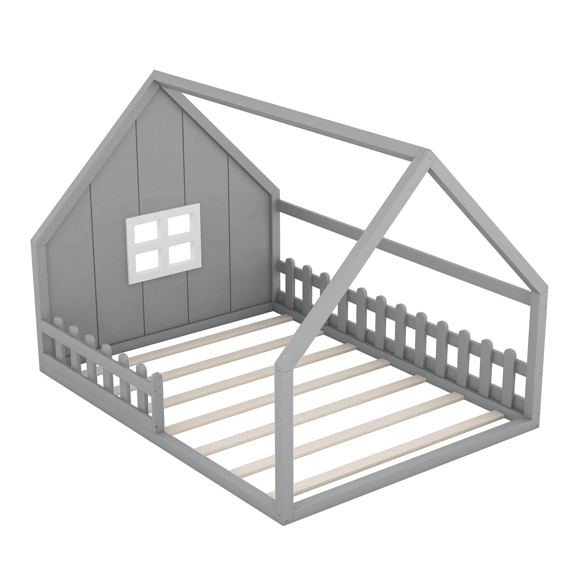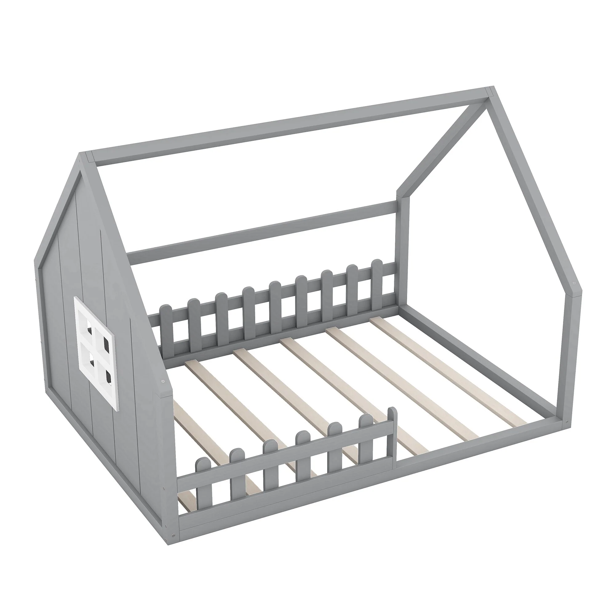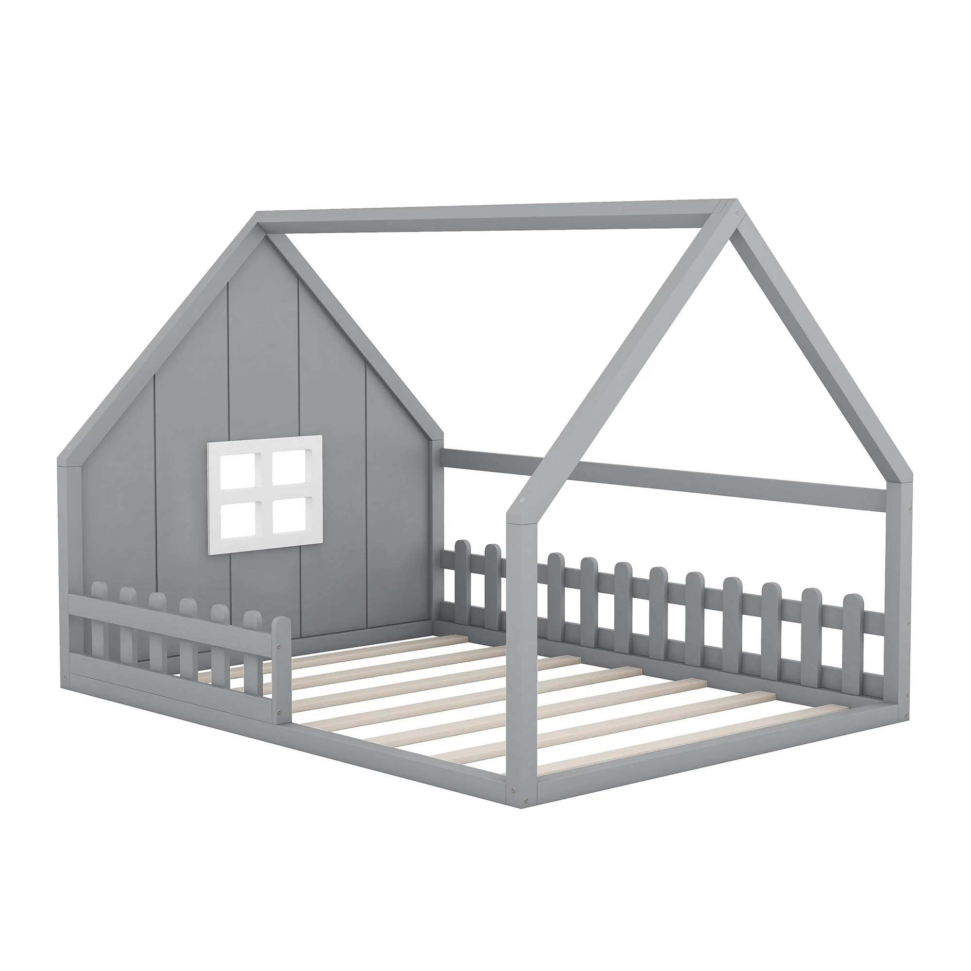 - [Charming House Design]: The house-shaped frame, complete with a window and fence, adds a unique, rustic charm to the bedroom, offering an exciting space for children to play and relax.